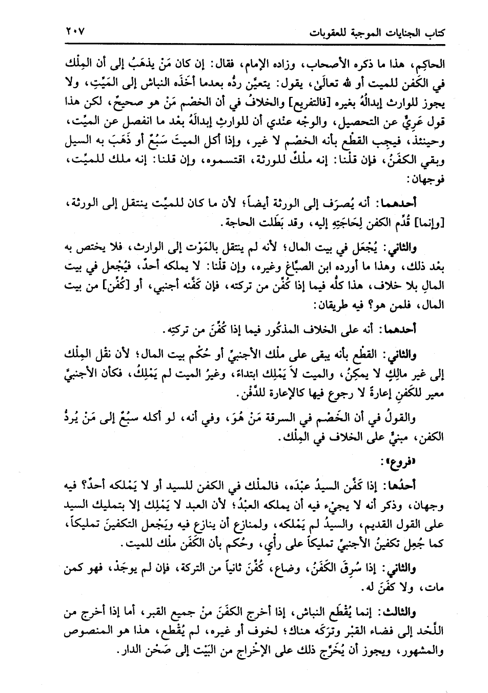 الحاكِمِ، هذا ما ذكره الأصحاب، وزاده الإِمام، فقال: إن كان مَنْ يذهَبُ إلى أن المِلْك في الكفن للميت أو لله تعالَى، يقول: يتعيَّن ردُّه بعد ما أخَذَه النباش إلى المَيِّتِ، ولا يجوز للوارث إبدالُهُ بغيره [فالتفريع] والخلافُ في أن الخصْم مَنْ هو صحيحٌ، لكن هذا قول عَريٌّ عن التحصيل، والوجْه عنْدي أن للوارثِ إبدالَهُ بعْد ما انفصل عن الميِّت، وحينئذ، فيجِب القطْع بأنه الخصْم لا غير، وإذا أكل الميتَ سَبُعٌ أو ذَهَبَ به السيل وبقي الكفَنُ، فإن قلْنا: إنه ملْكٌ للورثة، اقتسموه، وإن قلنا: إنه ملك للميِّت، فوجهان: