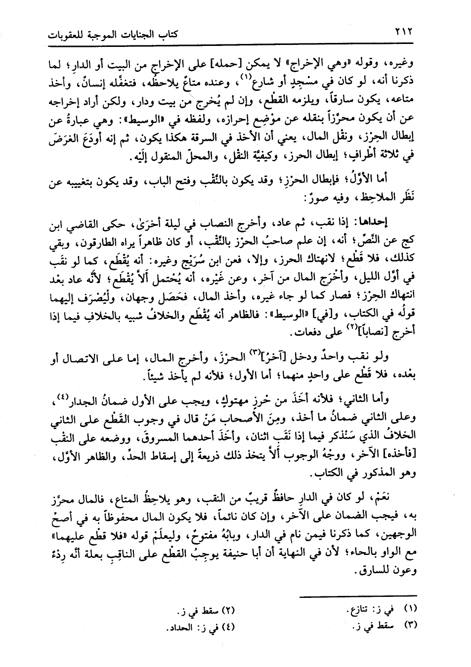 أما الأوَّلُ؛ فإبطال الحرْزِ؛ وقد يكون بالنَّقْب وفتح الباب، وقد يكون بتغييبه عن نَظَر الملاحِظ، وفيه صورٌ: