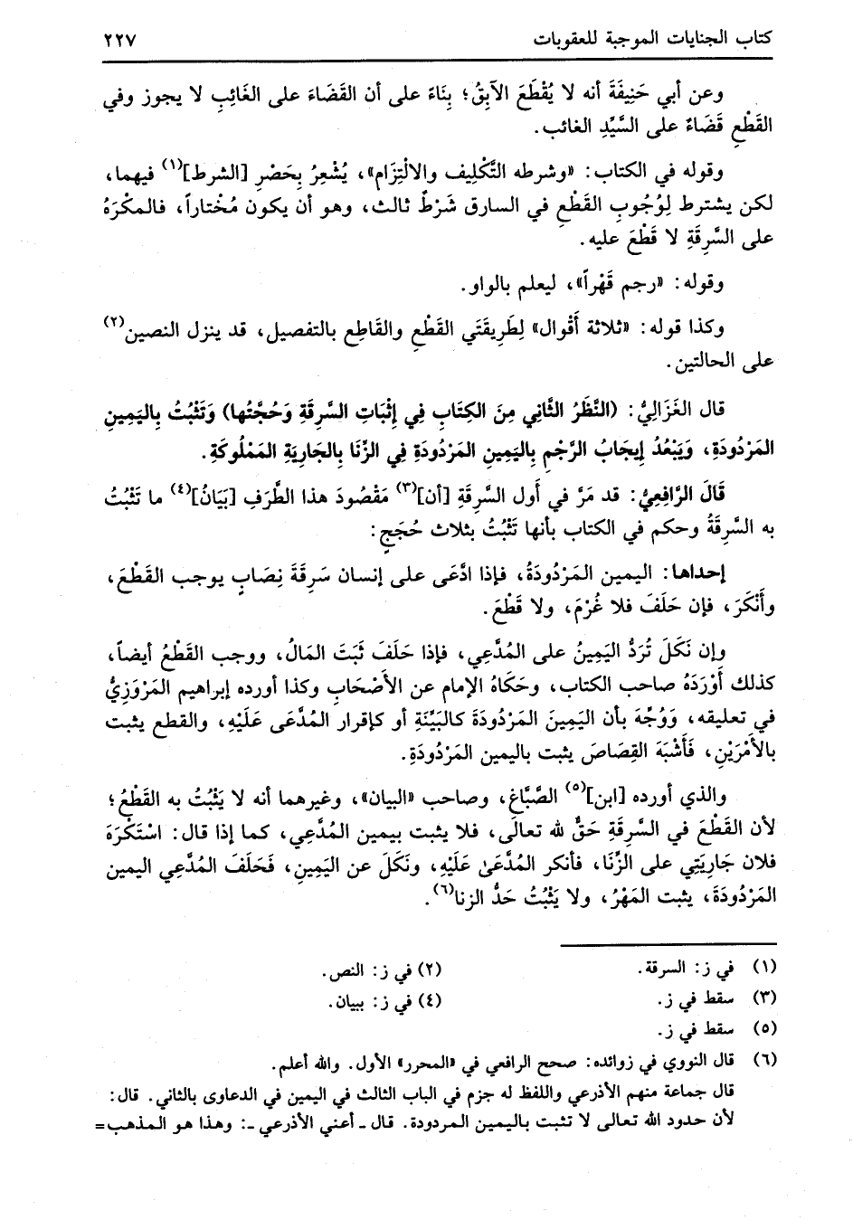 قال الغَزَالِيُّ: (النَّظَرُ الثَّانِي مِنَ الكِتَابِ فِي إثْبَاتِ السَّرِقَةِ وَحُجَّتُها) وَتَثْبُتُ بِاليَمِينِ المَرْدُودَةِ، وَيَبْعُدُ إيجَابُ الرَّجْمِ بِاليَمِينِ المَرْدُودَةِ فِي الزِّنَا بِالجَارِيَةِ المَمْلُوكَةِ.