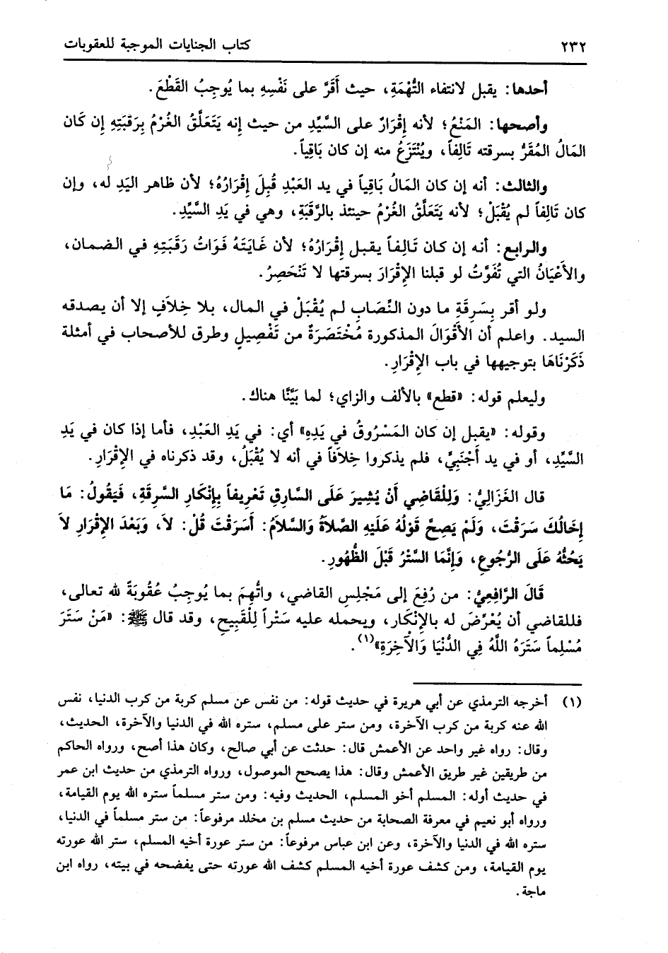 قال الغَزَالِيُّ: وَللْقَاضِي أَنْ يُشِيرَ عَلَى السَّارِقِ تَعْرِيفاً بِإنْكَارِ السَّرِقَةِ، فَيَقُولُ: مَا إِخَالُكَ سرَقْتَ، وَلَمْ يَصِحَّ قَوْلُهُ عَلَيْهِ الصَّلاة وَالسَّلاَمُ: أَسَرَقْتَ قُل: لاَ، وَبَعْدَ الإقْرَارِ لاَ يَحُثُّهُ عَلَى الرُّجُوعِ، وَإنَّما السَّتْرُ قَبْلَ الظُّهُورِ.