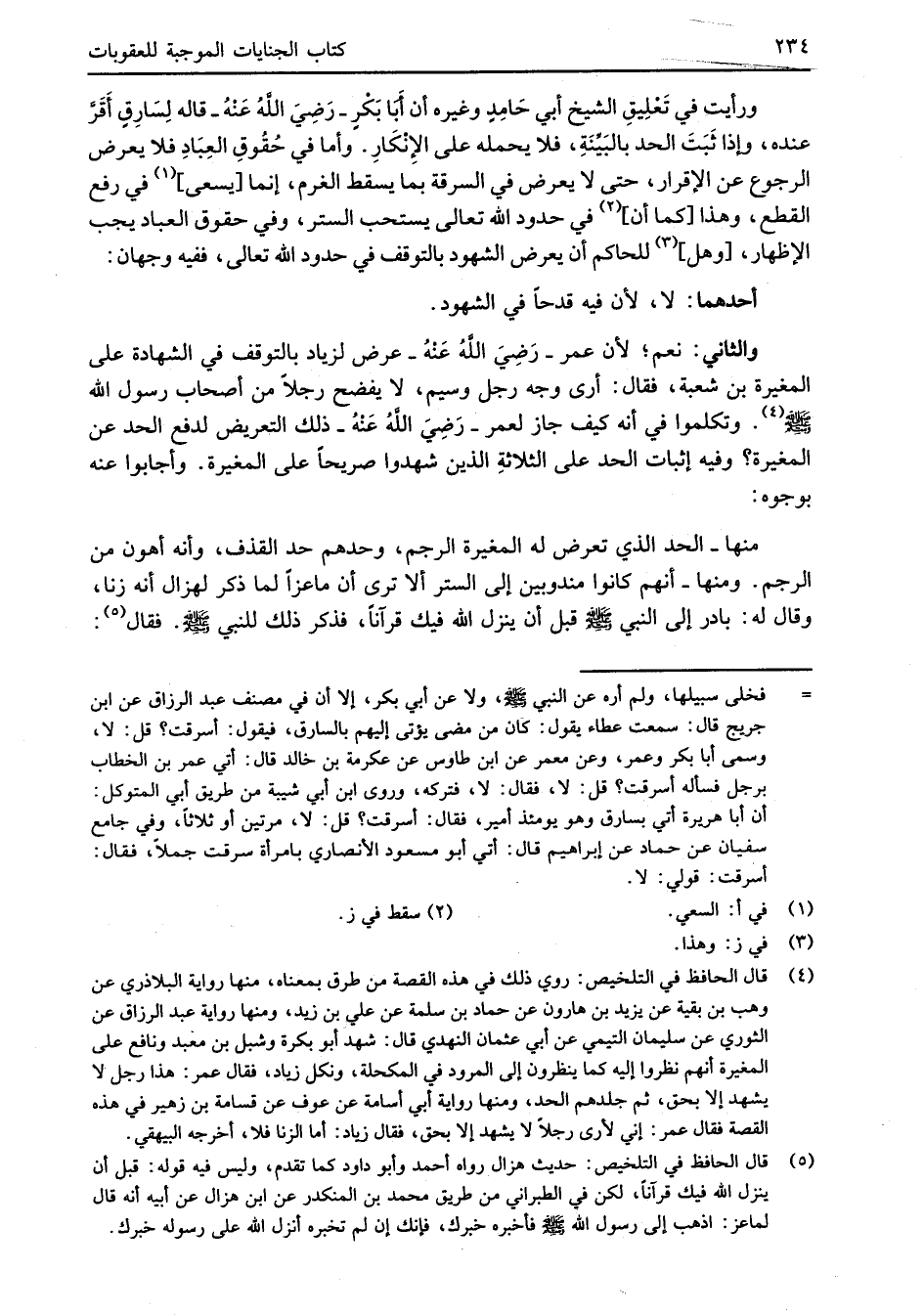 (¬4) قال الحافظ في التلخيص: روي ذلك في هذه القصة من طرق بمعناه، منها رواية البلاذري عن وهب بن بقية عن يزيد بن هارون عن حماد بن سلمة عن علي بن زيد، ومنها رواية عبد الرزاق عن الثوري عن سليمان التيمي عن أبي عثمان النهدي قال: شهد أبو بكرة وشبل بن معبد ونافع على المغيرة أنهم نظروا إليه كما ينظرون إلى المرود في المكحلة، ونكل زياد، فقال عمر: هذا رجل لا يشهد إلا بحق، ثم جلدهم الحد، ومنها رواية أبي أسامة عن عوف عن قسامة بن زهير في هذه القصة فقال عمر: إني لأرى رجلاً لا يشهد إلا بحق، فقال زياد: أما الزنا فلا، أخرجه البيهقي.