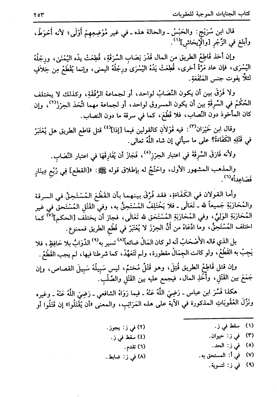 هكذا فَسَّرَ ابن عباس -رَضِيَ اللهُ عَنْهُ- فيما رَوَاهُ الشَّافعي -رَضِيَ اللهُ عَنْهُ- وغيره ونَزَّلَ العُقُوبَاتِ المذكورة في الآية على هذه المَرَاتِبِ، والمعنى "أن يُقْتَلُوا" إن قَتَلُوا أو