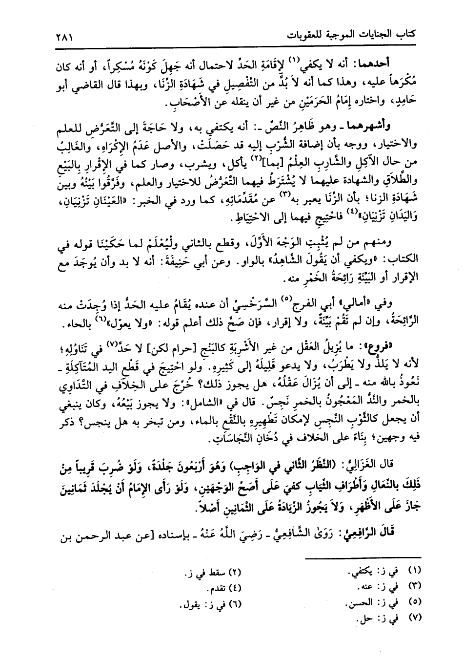 قال الغَزَالِيُّ: (النَّظَرُ الثَّاني في الوَاجِبِ) وَهُوَ أَرْبَعُونَ جَلْدَةً، وَلَوْ ضُرِبَ قَرِيبًا مِنْ ذَلِكَ بالنِّعَالِ وَأَطْرَافِ الثِّيَابِ كفيَ عَلَى أَصَحِّ الوَجْهَيْنِ، وَلَوْ رَأَى الإِمَامُ أن يُجْلَدَ ثَمَانِينَ جَازَ عَلَى الأَظْهَرِ، وَلاَ يَجُوزُ الزِّيَادَةُ عَلَى الثَّمَانِينِ أَصْلاً.