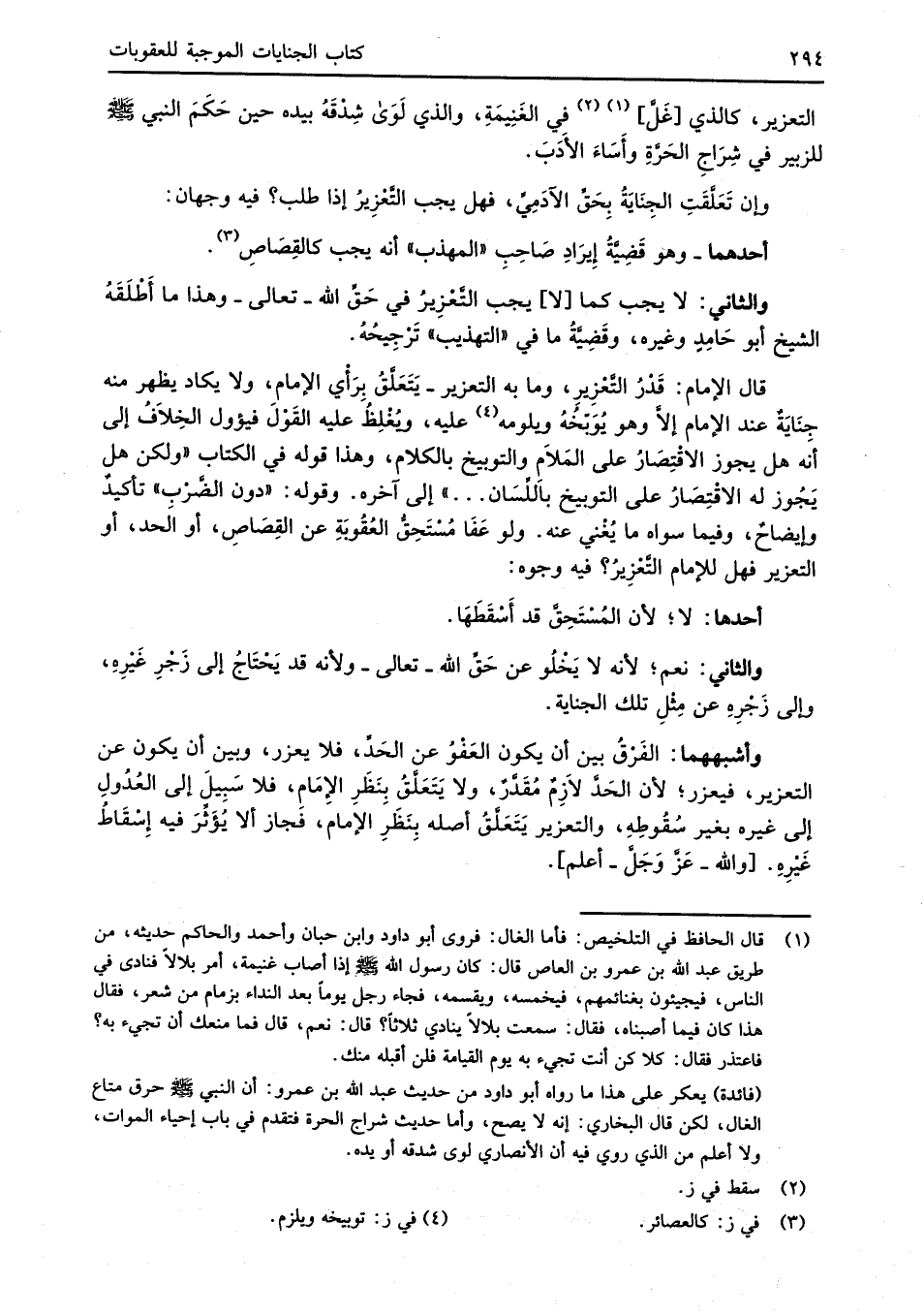 (¬1) قال الحافظ في التلخيص: فأما الغال: فروى أبو داود وابن حبان وأحمد والحاكم حديثه، من طريق عبد الله بن عمرو بن العاص قال: كان رسول الله -صلى الله عليه وسلم- إذا أصاب غنيمة، أمر بلالاً فنادى في الناس، فيجيئون بغنائمهم، فيخمسه، ويقسمه، فجاء رجل يوماً بعد النداء بزمام من شعر، فقال هذا كان فيما أصبناه، فقال: سمعت بلالاً ينادي ثلاثاً؟ قال: نعم، قال فما منعك أن تجيء به؟ فاعتذر فقال: كلا كن أنت تجيء به يوم القيامة فلن أقبله منك.