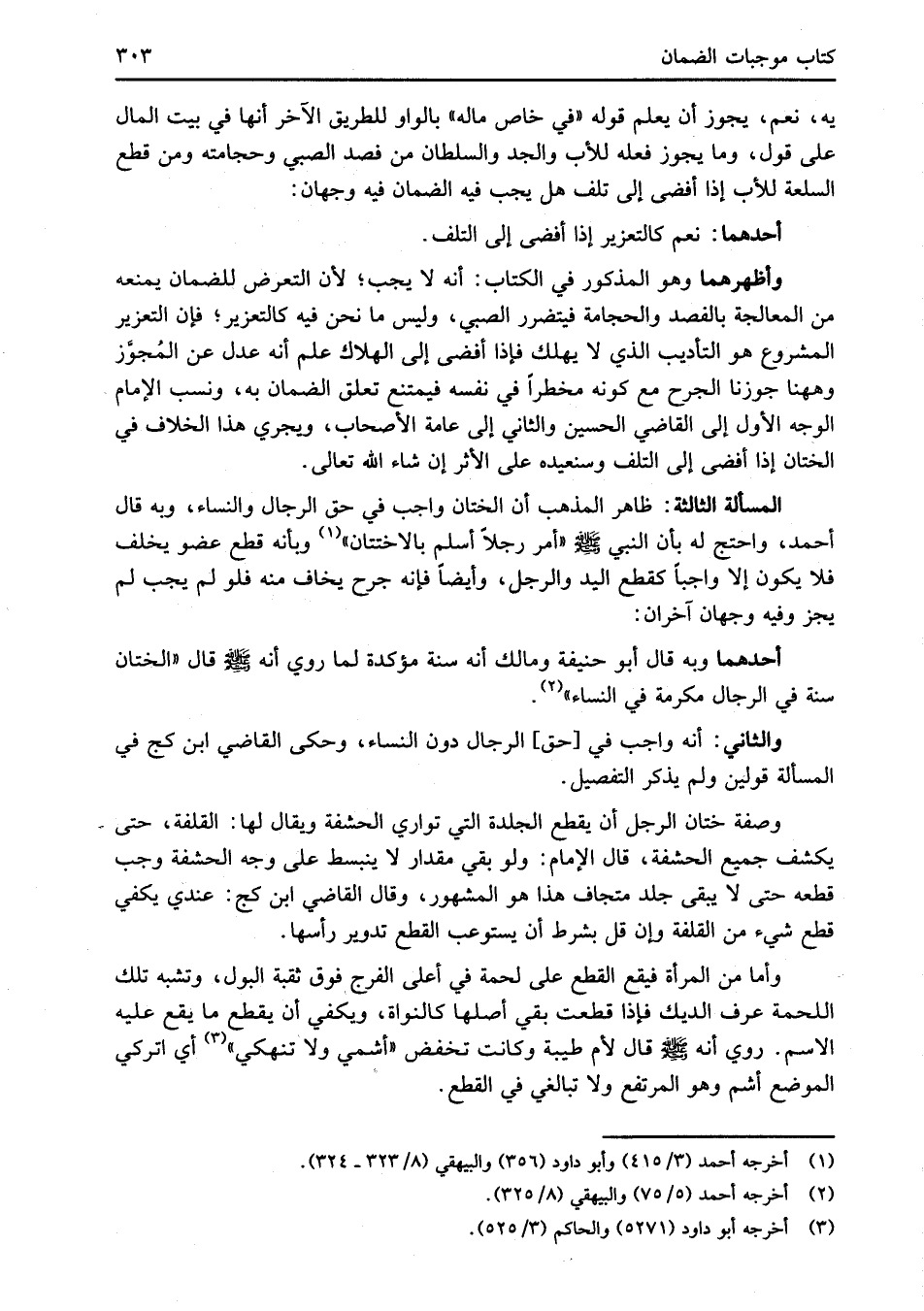 يه، نعم، يجوز أن يعلم قوله "في خاص ماله" بالواو للطريق الآخر أنها في بيت المال على قول، وما يجوز فعله للأب والجد والسلطان من فصد الصبي وحجامته ومن قطع السلعة للأب إذا أفضى إلى تلف هل يجب فيه الضمان فيه وجهان: