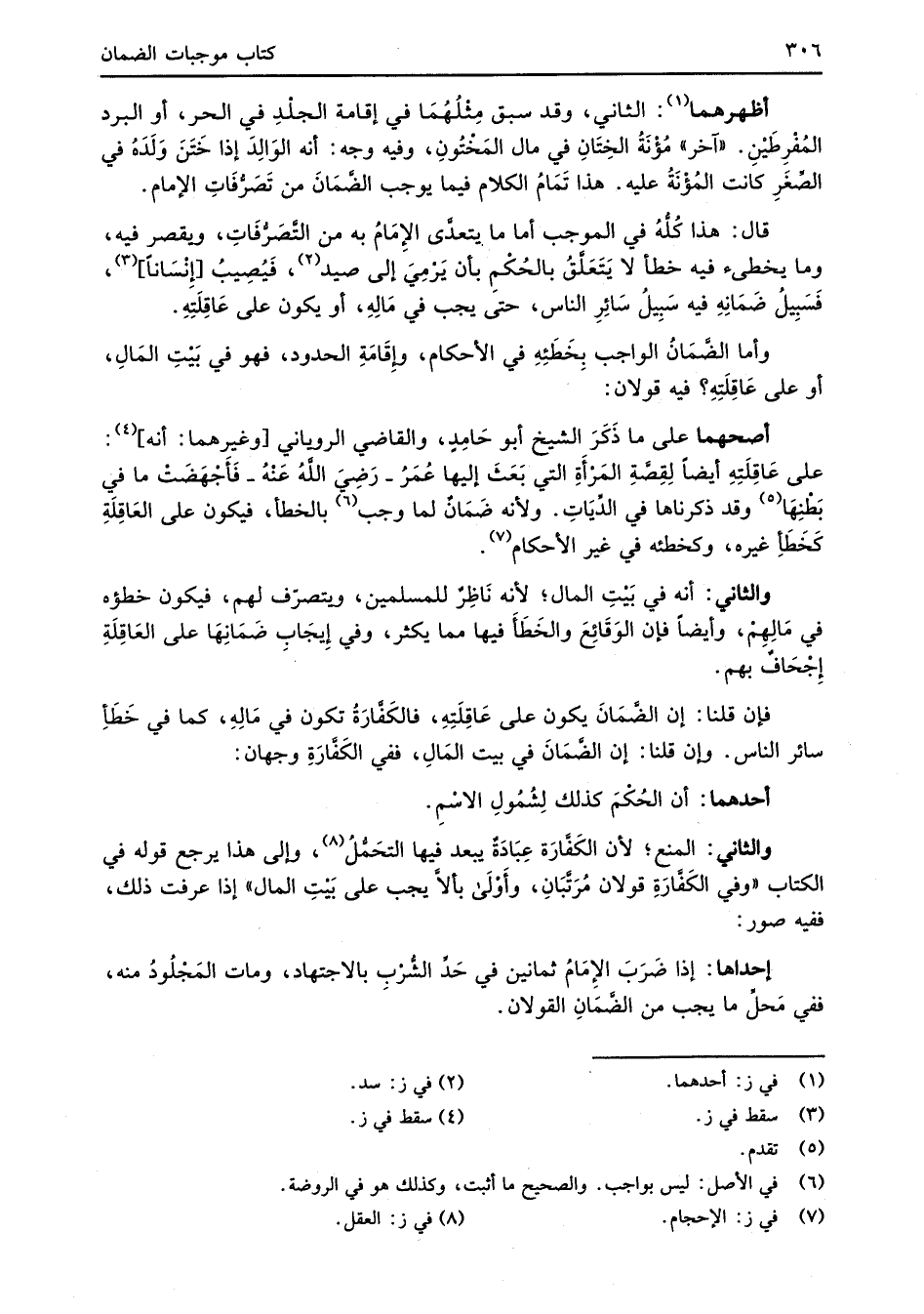 وأما الضَّمَانُ الواجب بِخَطَئِهِ في الأحكام، وإِقَامَةِ الحدود، فهو في بَيْتِ المَالِ، أو على عَاقِلَتِهِ؟ فيه قولان: