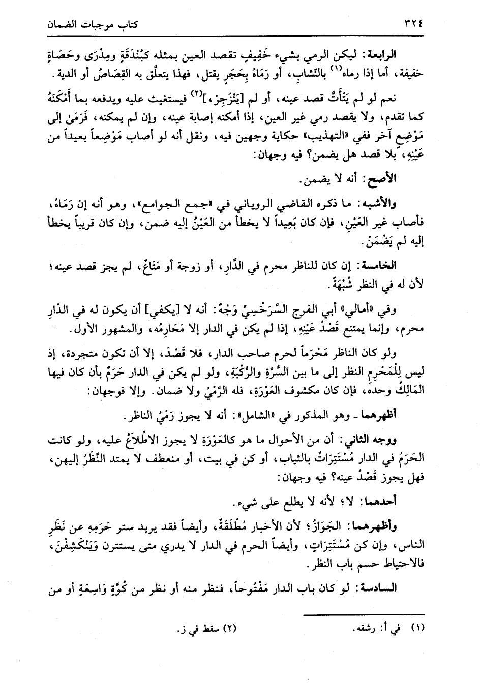 والأشبه: ما ذكره القاضي الروياني في "جمع الجوامع"، وهو أنه إن رَماهُ، فأصاب غير العَيْنِ، فإن كان بَعِيداً لا يخطأ من العَيْنُ إليه ضمن، وإن كان قريبًا يخطأ إليه لم يَضْمَنْ.