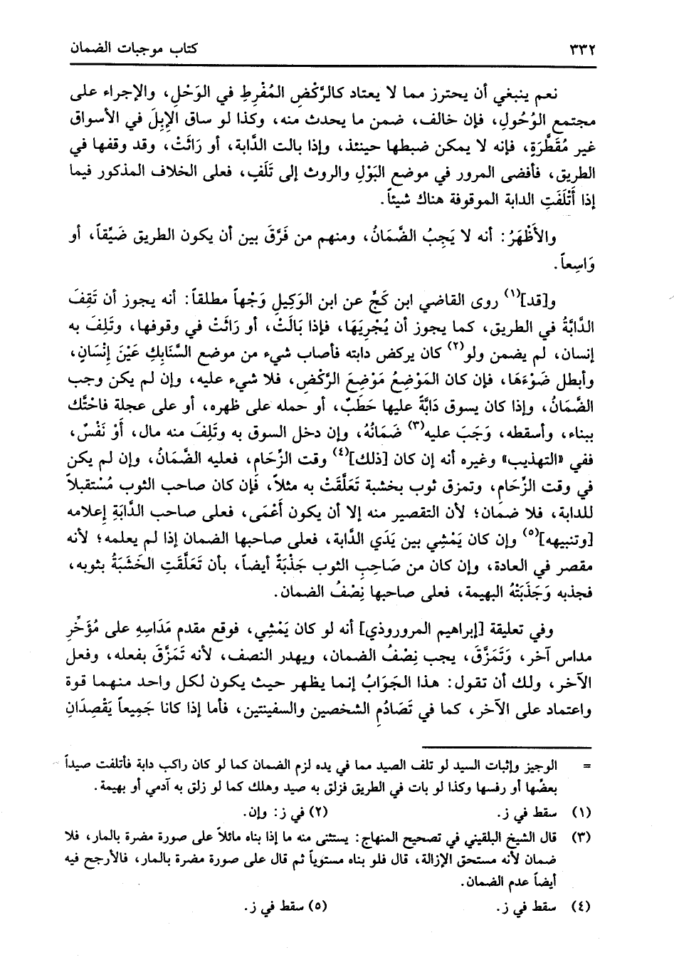 والأَظْهَرُ: أنه لا يَجِبُ الضَّمَانُ، ومنهم من فَرَّقَ بين أن يكون الطريق ضَيِّقاً، أو وَاسِعاً.
