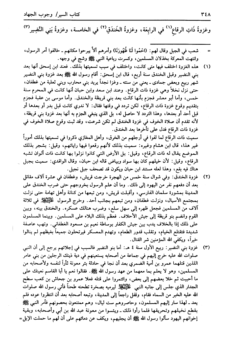 وغزوةُ ذاتِ الرقاعِ (¬1) في الرابِعَة، وغزوةُ الخَندَقِ (¬2) في الخامسة، وغزوةُ بَنِي النَّضِير (¬3)
