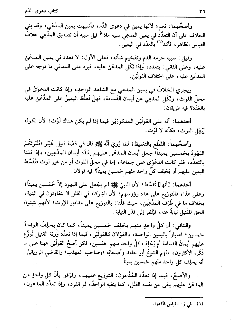 وقيل: سببه حرمة الدمِ وتفخيم شأنه، فعلى الأول: لا تعدد في يمين المدعَى عليه، وعلى الثاني: يتعدد، وإذا نَكَل المدعَى عليه، فيرد على المدعَي ما توجه على المدعَى عليه، على اختلاف القولَيْن.