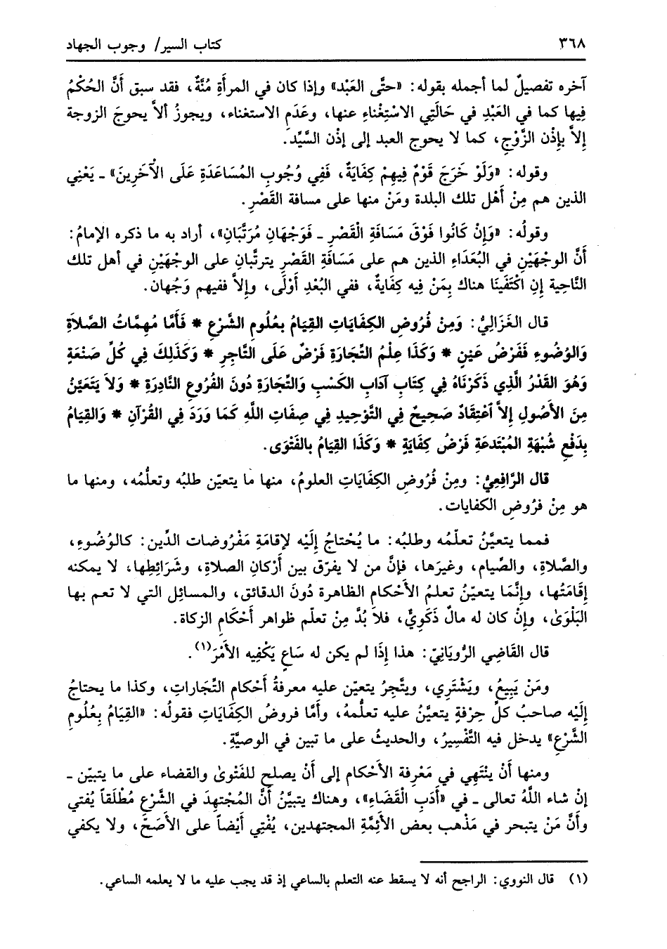 قال الرَّافِعِيُّ: ومِنْ فُرُوضِ الكِفَايَاتِ العلومُ، منها ما يتعيّن طلبُه وتعلُّمُه، ومنها ما هو مِنْ فرُوضِ الكفايات.