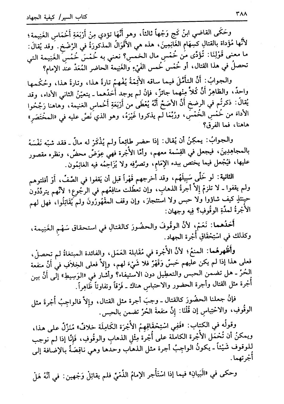 والجوابُ: يمكِنُ أن يُقال: إذا حضر طائِعاً ولم يُذْكَرْ له مالٌ -فقد شبّه نَفْسَهُ بالمجاهِدِينَ، فيجعل في القِسْمة معهم، وأمَّا الأُجْرة فهي عِوَضٌ محضٌ، ونظره مقصور عليها، فيُجْعل فيما يختص ببدء الإِمَامِ، وتصرُّفِه ولا يُزَاحِمُه فيه الغانِمُون.