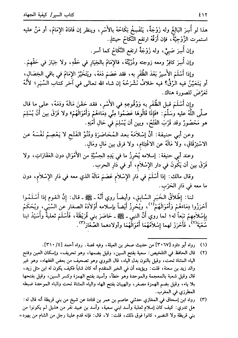(¬2) قال الحافظ في التلخيص: سعية بفتح السين، وقيل بضمها، وهو تحريف، وإسكان العين وفتح الياء المثناة تحت، وقيل بالنون بدل الياء، قال النووي وهو تصحيف من بعض الفقهاء، وهو غير والد زيد بن سعنة، قلت: ويؤيده أن في الخبر المتقدم أنه كان شابًا فكيف يكون له ابن مثل زيد، قال وقيل شعبة بالمعجمة والموحدة وهو خطأ، وأسيد بفتح الهمزة وكسر السين، وقيل بفتحها بلا ياء، وقيل بضم الهمزة مصغر، والهيبان بفتح الهاء والياء المثناة تحت والباء الموحدة ضبطه المطرزي في المغرب.