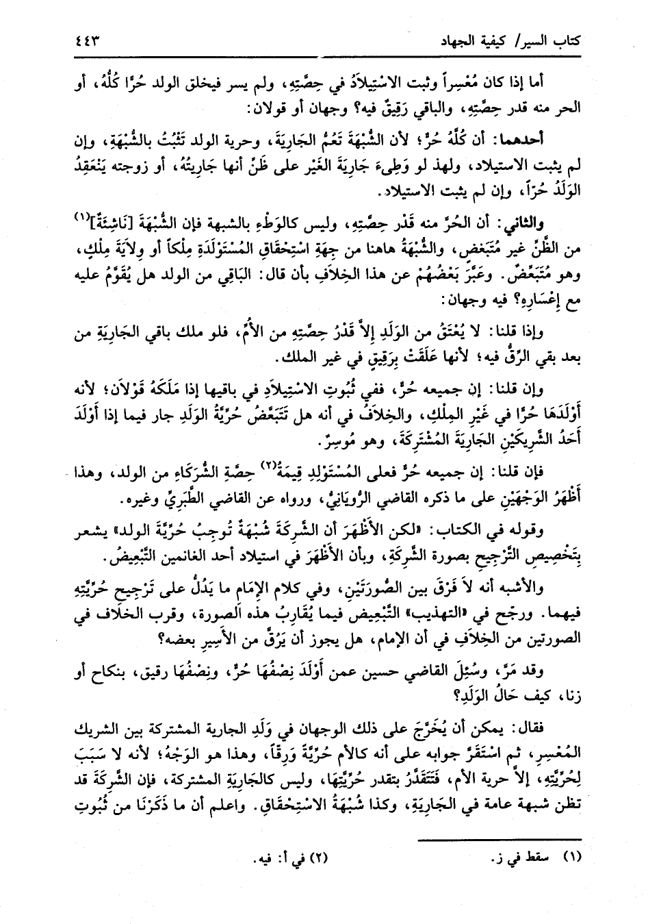 وقوله في الكتاب: "لكن الأَظْهَرَ أن الشَّرِكَةَ شُبْهَةٌ تُوجِبُ حُرِّيَّةَ الولد" يشعر بِتَخْصِيصِ التَّرْجِيحِ بصورة الشَّرِكَةِ، وبأن الأَظْهَرَ في استيلاد أحد الغانمين التَّبْعِيضُ.