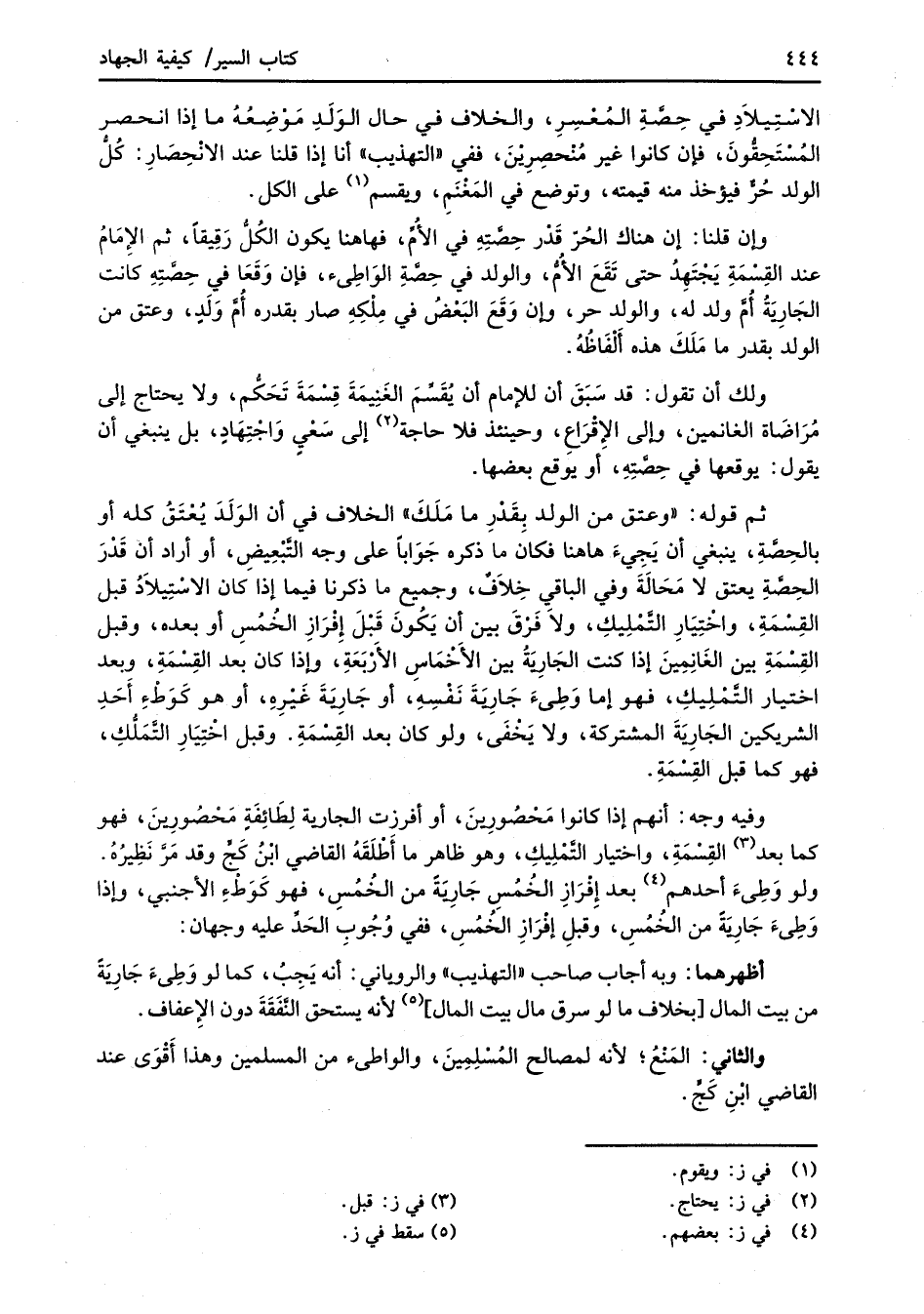 ثم قوله: "وعتق من الولد بِقَدْرِ ما مَلَكَ" الخلاف في أن الوَلَدَ يُعْتَقُ كله أو بالحِصَّةِ، ينبغي أن يَجِيءَ هاهنا فكان ما ذكره جَوَاباً على وجه التَّبْعِيضِ، أو أراد أن قَدْرَ الحِصَّةِ يعتق لا مَحَالَةَ وفي الباقي خِلاَفٌ، وجميع ما ذكرنا فيما إذا كان الاسْتِيلاَدُ قبل القِسْمَةِ، واخْتِيَارِ التَّمْلِيكِ، ولاَ فَرْقَ بين أن يَكُونَ قَبْلَ إِفْرَازِ الخُمُسِ أو بعده، وقبل القِسْمَةِ بين الغَانِمِينَ إذا كنت الجَارِيَةُ بين الأَخْمَاسِ الأَرْبَعَةِ، وإذا كان بعد القِسْمَةِ، وبعد اختيار التَّمْلِيكِ، فهو إما وَطِئَ جَارَيةَ نَفْسِهِ، أو جَارِيةَ غَيْرِهِ، أو هو كَوَطْءِ أَحَدِ الشريكين الجَارِيَةَ المشتركة، ولا يَخْفَى، ولو كان بعد القِسْمَةِ. وقبل اخْتِيَارِ التَّمَلُّكِ، فهو كما قبل القِسْمَةِ.