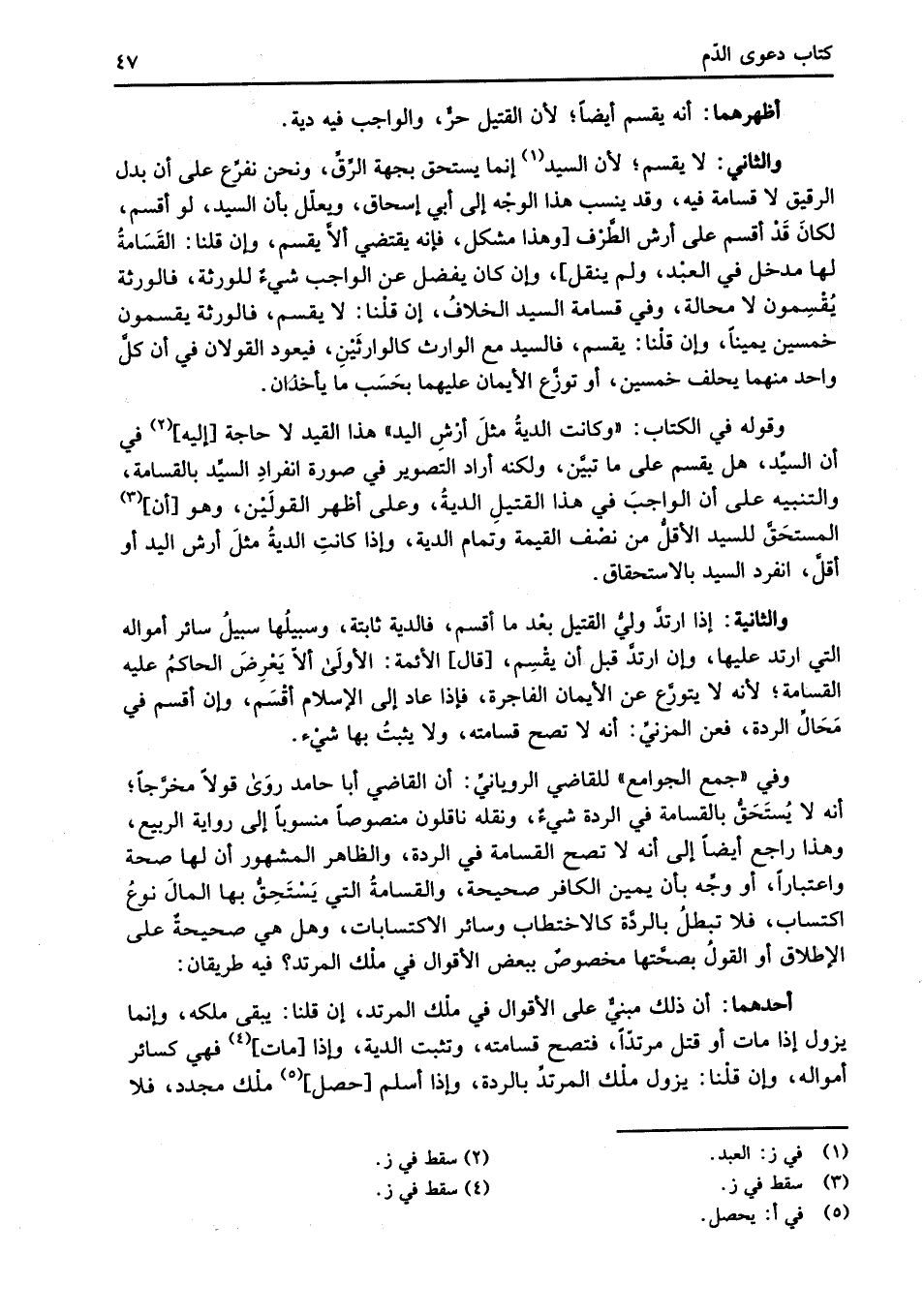 وفي "جمع الجوامع" للقاضي الرويانيِّ: أن القاضي أبا حامد روَى قولاً مخرجاً؛ أنه لا يُستَحَقُّ بالقسامة في الردة شيءٌ، ونقله ناقلون منصوصاً منسوبًا إلى رواية الربيع، وهذا راجع أيضًا إلى أنه لا تصح القسامة في الردة، والظاهر المشهور أن لها صحة واعتباراً، أو وجِّه بأن يمين الكافر صحيحة، والقسامةُ التي يَسْتَحِقُّ بها المالَ نوعُ اكتساب، فلا تبطلُ بالردَّة كالاختطاب وسائر الاكتسابات، وهل هي صحيحةٌ على الإطلاق أو القولُ بصحتها مخصوصٌ ببعض الأقوال في ملْك المرتد؟ فيه طريقان: