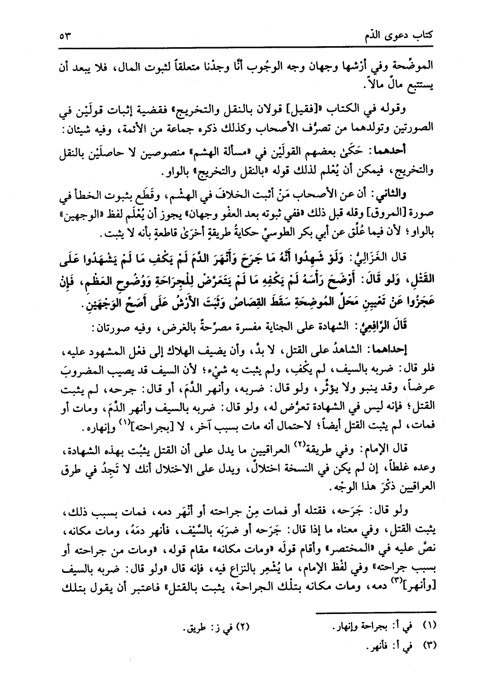 قال الإِمام: وفي طريقة (¬2) العراقيين ما يدل على أن القتل يثبُت بهذه الشهادة، وعده غلطاً، إن لم يكن في النسخة اختلالٌ، ويدل على الاختلال أنك لا تَجِدُ في طرق العراقيين ذكْرَ هذا الوجْه.