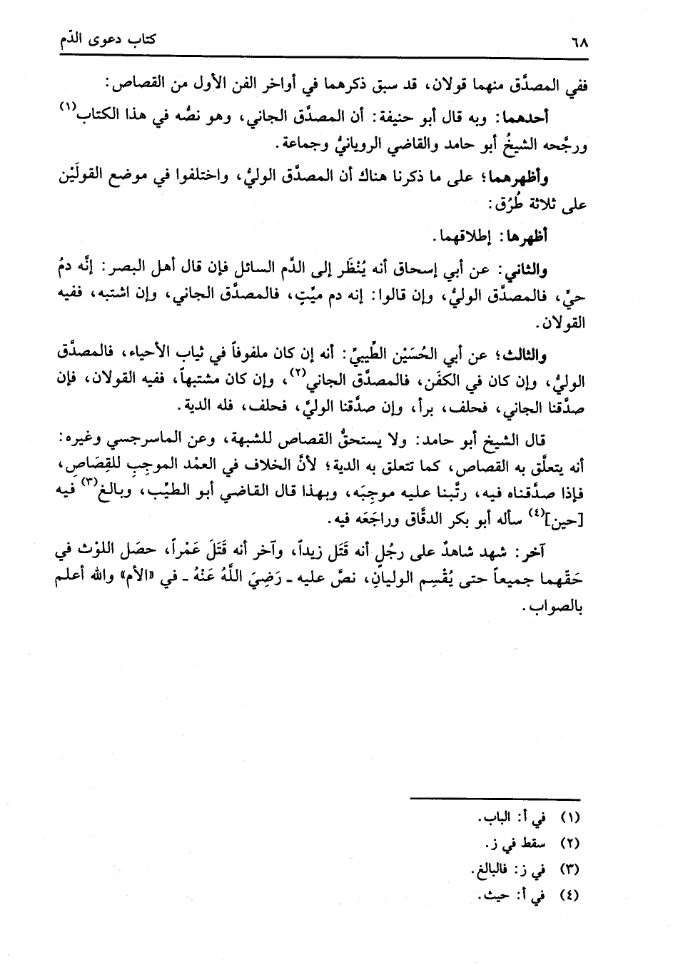 قال الشيخ أبو حامد: ولا يستحقُّ القصاص للشبهة، وعن الماسرجسي وغيره: أنه يتعلَّق به القصاص، كما تتعلق به الدية؛ لأنَّ الخلاف في العمْد الموجِبِ للقِصَاصِ، فإذا صدَّقناه فيه، رتَّبنا عليه موجِبَه، وبهذا قال القاضي أبو الطيِّب، وبالغ (¬3) فيه [حين] (¬4) سأله أبو بكر الدقَّاق وراجَعَه فيه.