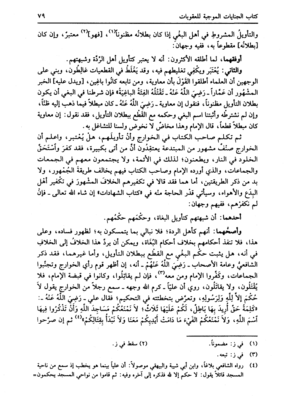 أحدهما: أن شبهتهم كتاويل البغاة، وحكْمَهم حكْمُهم.