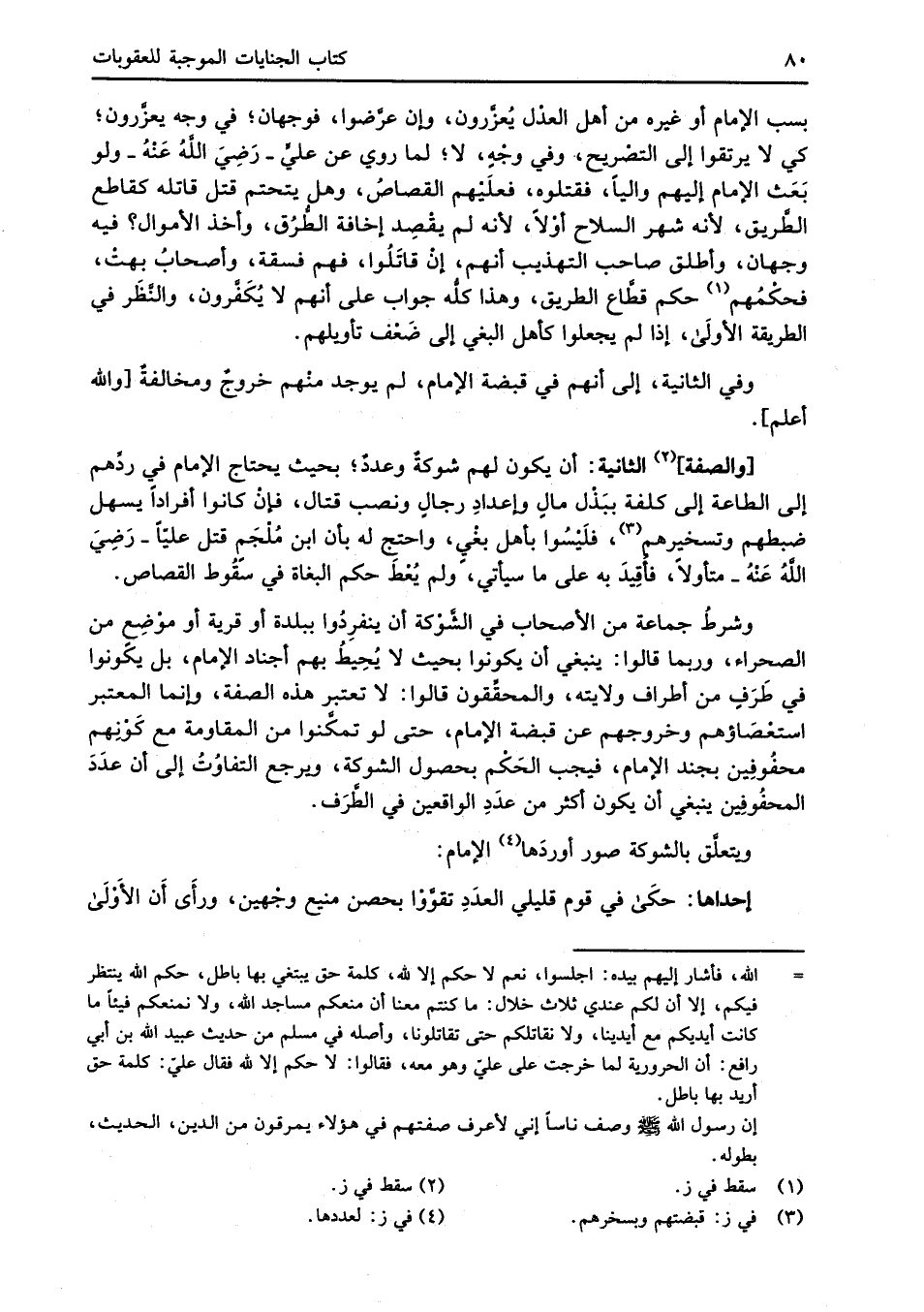 [والصفة] (¬2) الثانية: أن يكون لهم شوكةٌ وعددٌ؛ بحيث يحتاج الإِمام في ردِّهم إلى الطاعة إلى كلفة ببَذْل مالٍ وإعدادِ رجالٍ ونصب قتال، فإنْ كانوا أفراداً يسهل ضبطهم وتسخيرهم (¬3)، فلَيْسُوا بأهل بغْيٍ، واحتج له بأن ابن مُلْجَمٍ قتل علياً -رَضِيَ الله عَنْهُ- متأولاً، فأقِيدَ به على ما سيأتي، ولم يُعْطَ حكم البغاة في سقُوط القصاص.