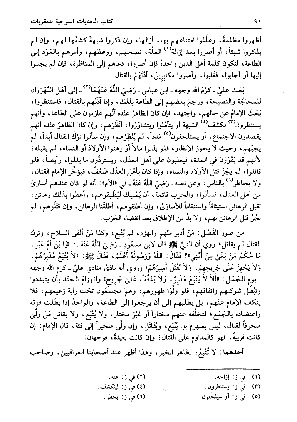 أظهروا مظلمةً، وعلَّلوا امتناعهم بها، أزالها، وإن ذكروا شبهةً كشَفَها لهم، وإن لم يذكروا شيئاً، أو أصروا بعد إزالة (¬1) العلَّة، نصحهم، ووعظهم، وأمرهم بالعَوْد إلى الطاعة، لتكون كلمة أهل الدين واحدةً فإن أصروا، دعاهم إلى المناظرة، فإن لم يجيبوا إليها أو أجابوا، فغُلبوا، وأصروا مكابِرِينَ، آذَنَهُمْ بالقتال.