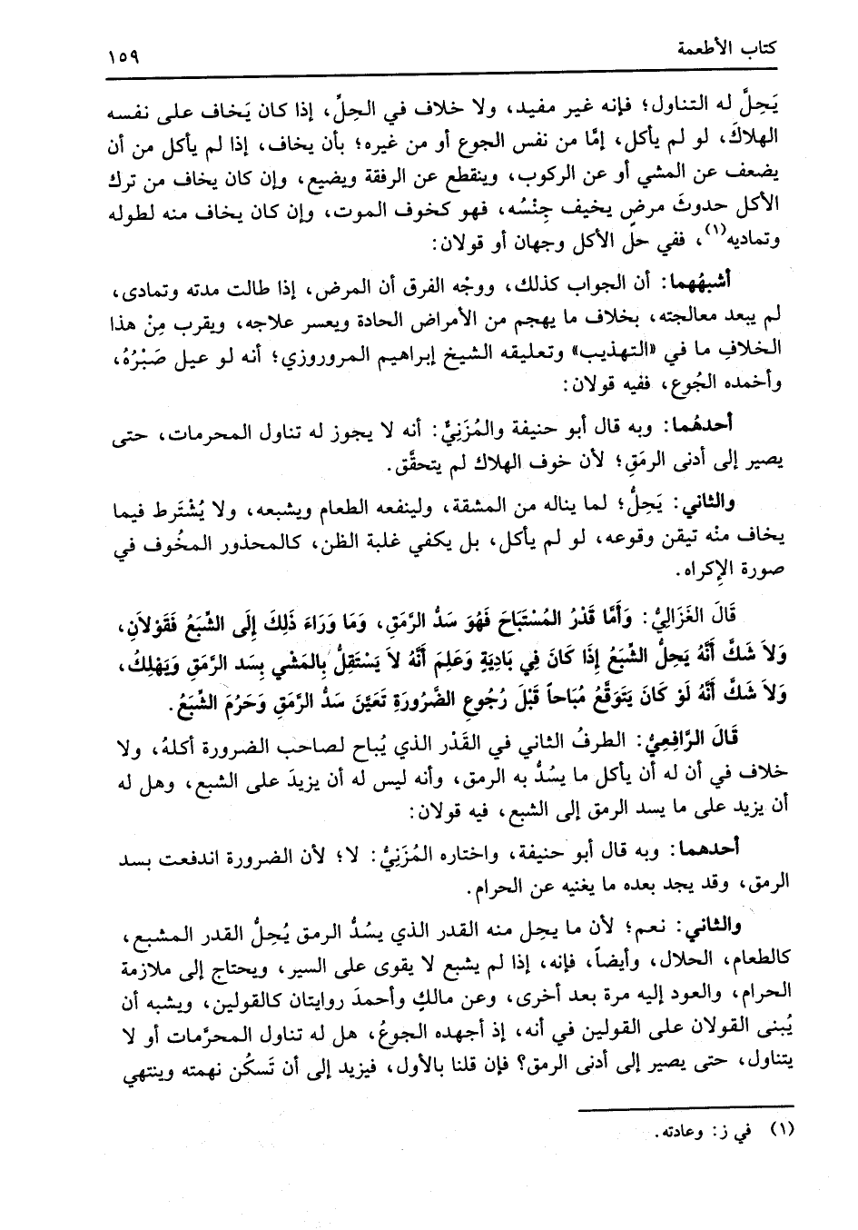والثاني: نعم؛ لأن ما يحِل منه القدر الذي يسُدُّ الرمق يُحِلُّ القدر المشبع، كالطعام، الحلال، وأيضاً، فإنه، إذا لم يشبع لا يقوى على السير، ويحتاج إلى ملازمة الحرام، والعود إليه مرة بعد أخرى، وعن مالكٍ وأحمدَ روايتان كالقولين، ويشبه أن يُبنى القولان على القولين في أنه، إذ أجهده الجوعُ، هل له تناول المحرَّمات أو لا يتناول، حتى يصير إلى أدنى الرمق؟ فإن قلنا بالأول، فيزيد إلى أن تَسكُن نهمته وينتهي