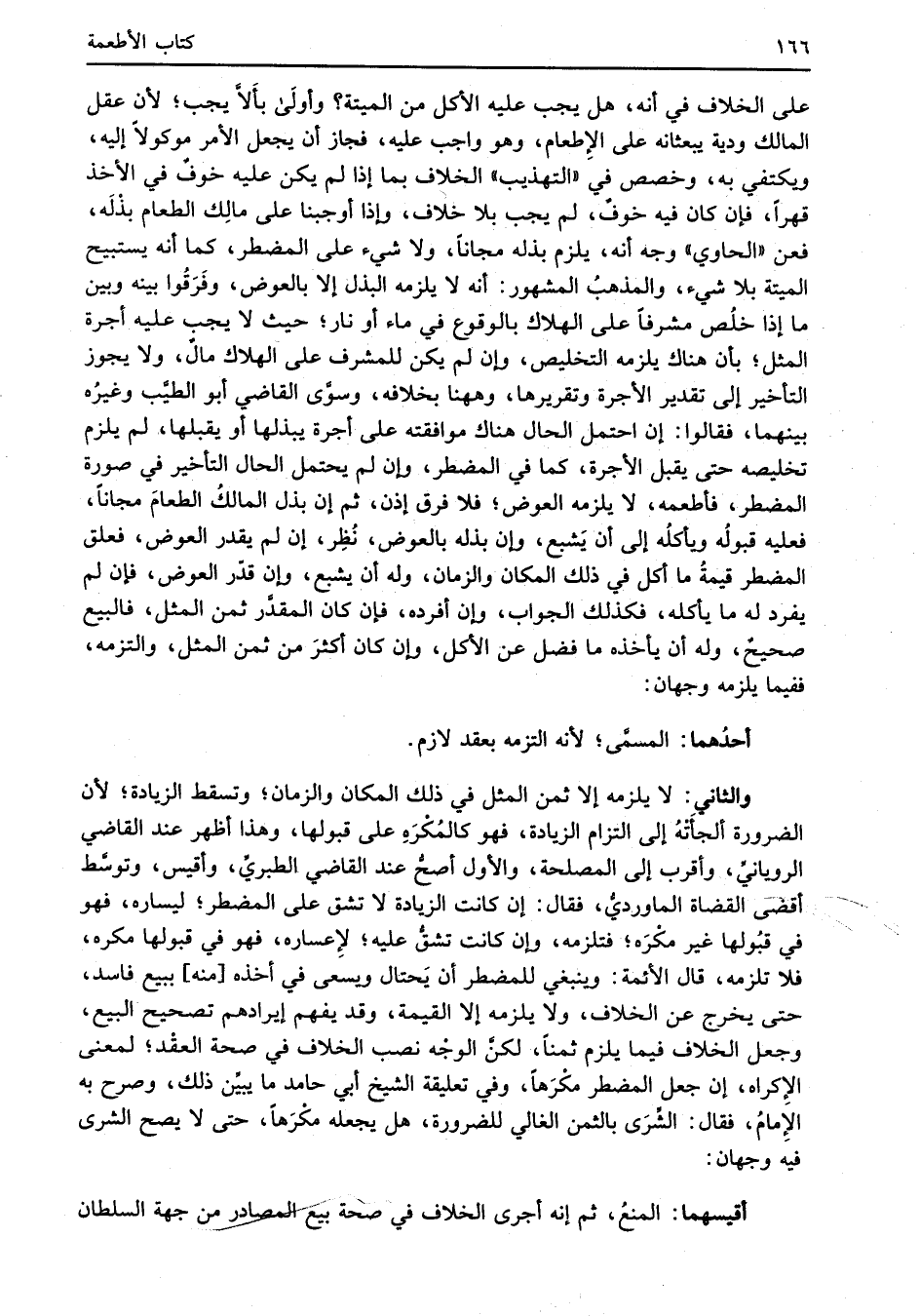 والثاني: لا يلزمه إلا ثمن المثل في ذلك المكان والزمان؛ وتسقط الزيادة؛ لأن الضرورة ألجأتْهُ إلى التزام الزيادة، فهو كالمُكْرَهِ على قبولها، وهذا أظهر عند القاضي الرويانيِّ، وأقرب إلى المصلحة، والأول أصحُّ عند القاضي الطبريِّ، وأقيس، وتوسَّط أقضى القضاة الماورديُّ، فقال: إن كانت الزيادة لا تشق على المضطر؛ ليساره، فهو في قبُولها غير مكْرَه؛ فتلزمه، وإن كانت تشقُّ عليه؛ لإِعساره، فهو في قبولها مكره، فلا تلزمه، قال الأئمة: وينبغي للمضطر أن يَحتال وشعى في أخذه [منه] ببيع فاسد، حتى يخرج عن الخلاف، ولا يلزمه إلا القيمة، وقد يفهم إيرادهم تصحيح البيع، وجعل الخلاف فيما يلزم ثمناً، لكنَّ الوجْه نصب الخلاف في صحة العقْد؛ لمعنى الإكراه، إن جعل المضطر مكْرَهاً، وفي تعليقة الشيخ أبي حامد ما يبيِّن ذلك، وصرح به الإِمامُ، فقال: الشِّرَى بالثمن الغالي للضرورة، هل يجعله مكْرَهاً، حتى لا يصح الشرى فيه وجهان: