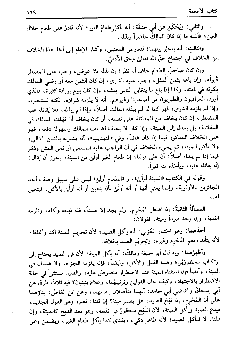 وقوله في الكتاب "الميتة أولَى"، و"الطعام أولَى"، ليس على سبيل وصف أحد الجائزين بالأولوية، وإنما يعني أنها أو أنه أولَى بأن يتعين أو أنه أولَّى بالأكل، فيتعين له.