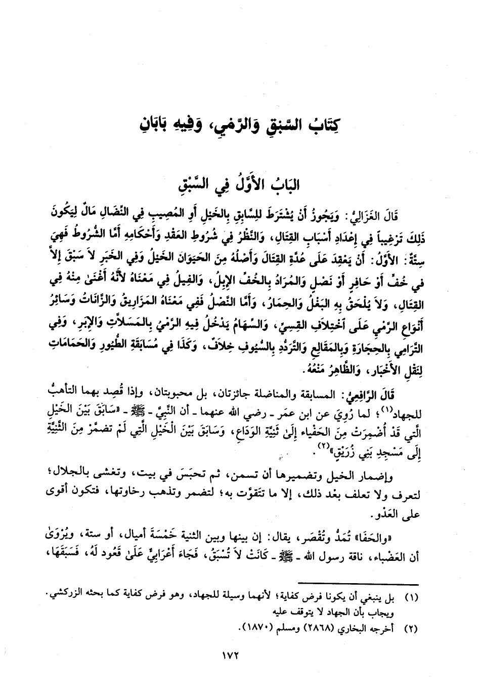كِتَابُ السَّبْقِ وَالرَّمْيِ، وَفِيهِ بَابَانِ