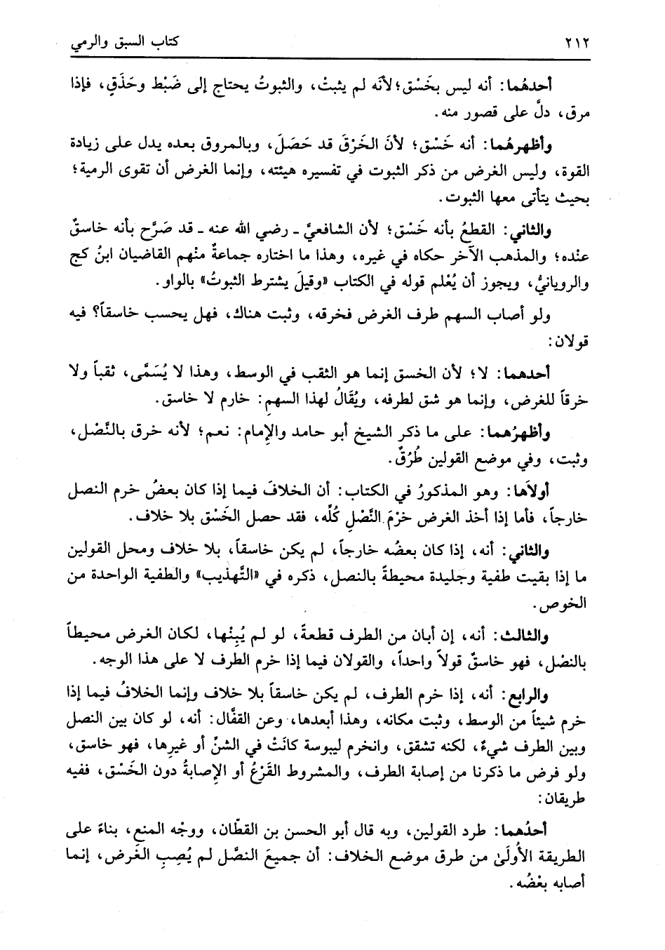 والثالث: أنه، إن أبان من الطرف قطعةً، لو لم يُبِنْها, لكان الغرض محيطاً بالنصْل، فهو خاسقٌ قولاً واحداً، والقولان فيما إذا خرم الطرف لا على هذا الوجه.