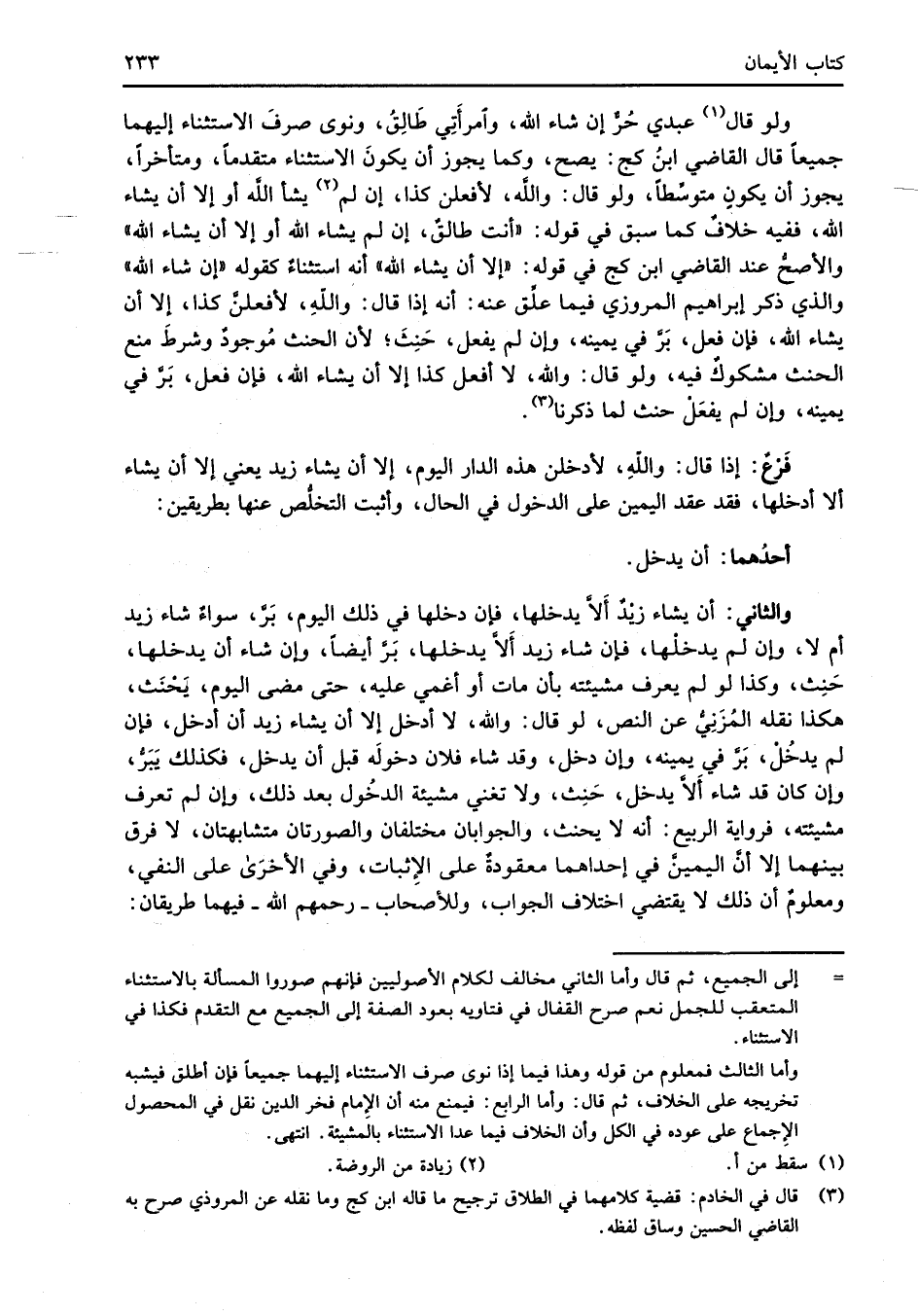 فَرْعٌ: إذا قال: واللهِ، لأدخلن هذه الدار اليوم، إلا أن يشاء زيد يعني إلا أن يشاء ألا أدخلها، فقد عقد اليمين على الدخول في الحال، وأثبت التخلُّص عنها بطريقين: