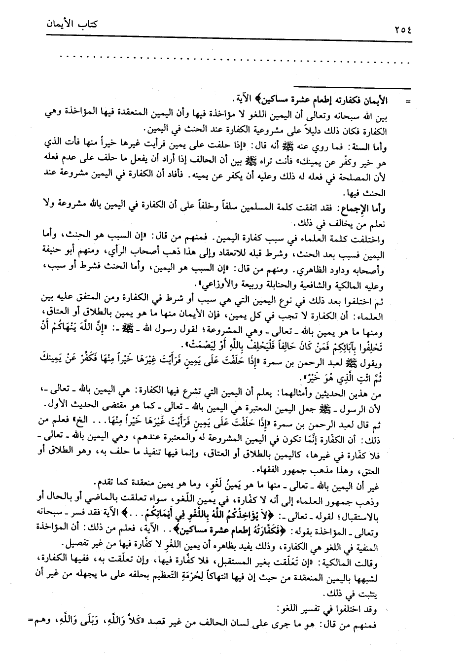 من هذين الحديثين وأمثالهما: يعلم أن اليمين التي تشرع فيها الكفارة: هي اليمين بالله -تعالى-، لأن الرسول -صلى الله عليه وسلم- جعل اليمين المعتبرة هي اليمين بالله -تعالى- كما هو مقتضى الحديث الأول. ثم قال لعبد الرحمن بن سمرة "إِذَا حَلَفْتَ عَلَى يَمِينٍ فَرَأَيْتَ غَيْرَهَا خَيْرًا مِنْهَا ... الخ" فعلم من ذلك: أن الكفّارة إنَّمَا تكون في اليمين المشروعة له والمعتبرة عندهم، وهي اليمين بالله -تعالى- فلا كفّارة في غيرها، كاليمين بالطلاق أو العتاق، وإنما فيها تنفيذ ما حلف به، وهو الطلاق أو العتق، وهذا مذهب جمهور الفقهاء.