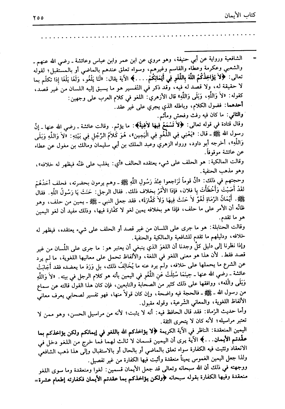 = الشافعية ورواية عن أبي حنيفة، وهو مروي عن ابن عمر وابن عباس وعائشة -رضي الله عنهم- والشعبي وعكرمة وعطاء والقاسم وغيرهم، وسواء تعلق عندهم بالماضي أو بالمستقبل؛ لقوله تعالى: {لَا يُؤَاخِذُكُمُ اللَّهُ بِاللَّغْوِ فِي أَيْمَانِكُمْ ...} الآية يقال: "لَغَا يَلْغُو، وَلَغَا يَلْغَا إِذا تكلّم بما لا حقيقة له، ولا قصد له فيه، وقد ذكر في التفسير هو ما يسبق إليه اللسان من غير قصد، كقوله: "لاَ وَاللهِ، وَبَلَى وَالله" قال الأزهري: اللغو في كلام العرب على وجهين: