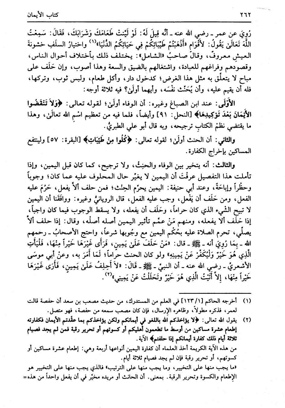 (¬2) يقول الله تعالى: {لَا يُؤَاخِذُكُمُ الله بِاللَّغْوِ في أَيْمَانِكُمْ وَلَكِنْ يُؤَاخِذُكُمْ بِمَا عَقَّدْتُمُ الْأَيْمَانَ فَكَفَّارَتُهُ إِطْعَامُ عَشَرَةِ مَسَاكِينَ مِنْ أَوْسَطِ مَا تُطْعِمُونَ أَهْلِيكُمْ أَوْ كِسْوَتُهُمْ أَوْ تَحْرِيرُ رَقَبَةٍ فَمَنْ لَمْ يَجِدْ فَصِيَامُ ثَلَاثَةِ أَيَّامٍ ذَلِكَ كَفَّارَةُ أَيْمَانِكُمْ إِذَا حَلَفْتُمْ} الآية.