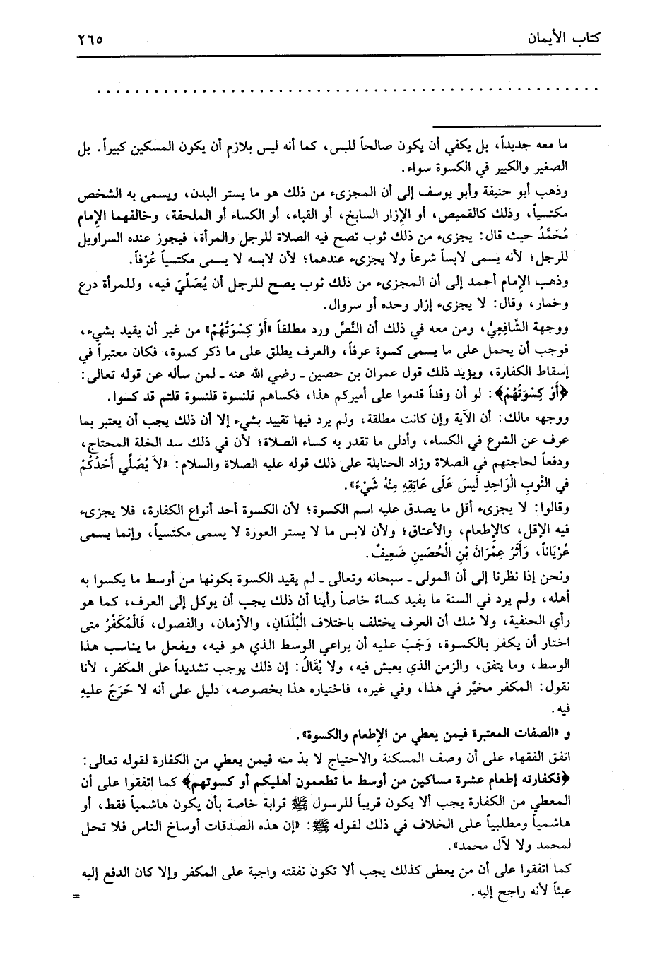 و"الصفات المعتبرة فيمن يعطي من الإِطعام والكسوة".