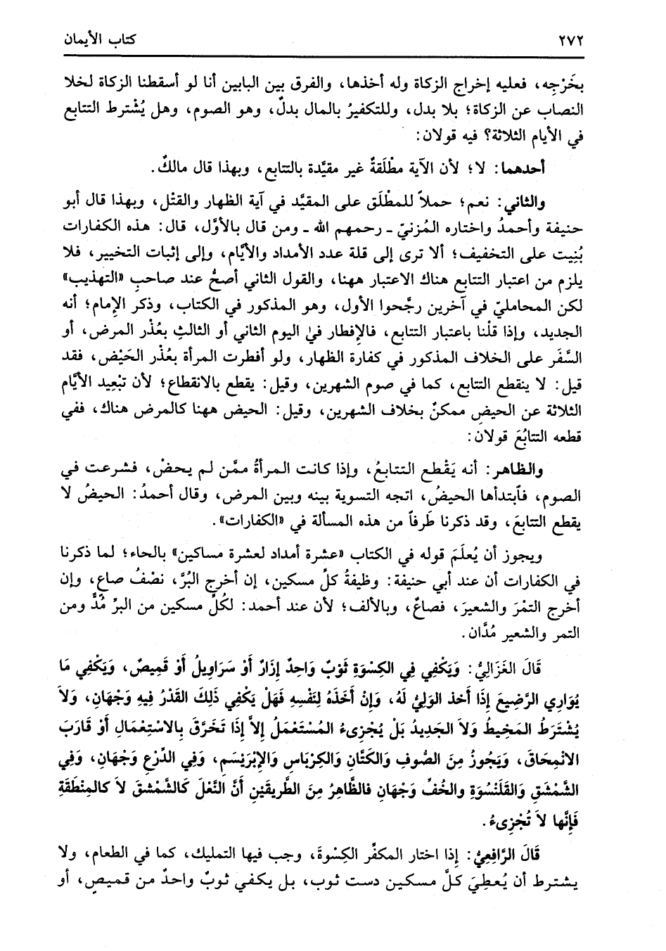 بخَرْجِه، فعليه إخراج الزكاة وله أخذها، والفرق بين البابين أنا لو أسقطنا الزكاة لخلا النصاب عن الزكاة؛ بلا بدل، وللتكفيرُ بالمال بدلٌ، وهو الصوم، وهل يُشْترط التتابع في الأيام الثلاثة؟ فيه قولان:
