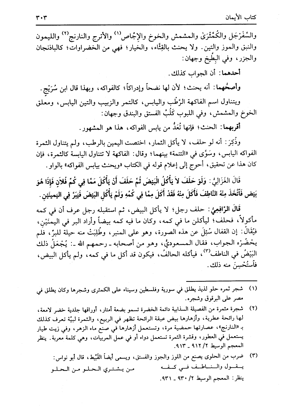 والسَّفَرْجَل والكُمَّثْرَى والمشمش والخوخ والإِجِّاص (¬1) والأترج والنارنج (¬2) والليمون والنبق والموز والتين. ولا يحنث بالقِثَّاء، والخيار؛ فهي من الخضراوات؛ كالباذنجان والجزر، وفي البِطِّيخ وجهان: