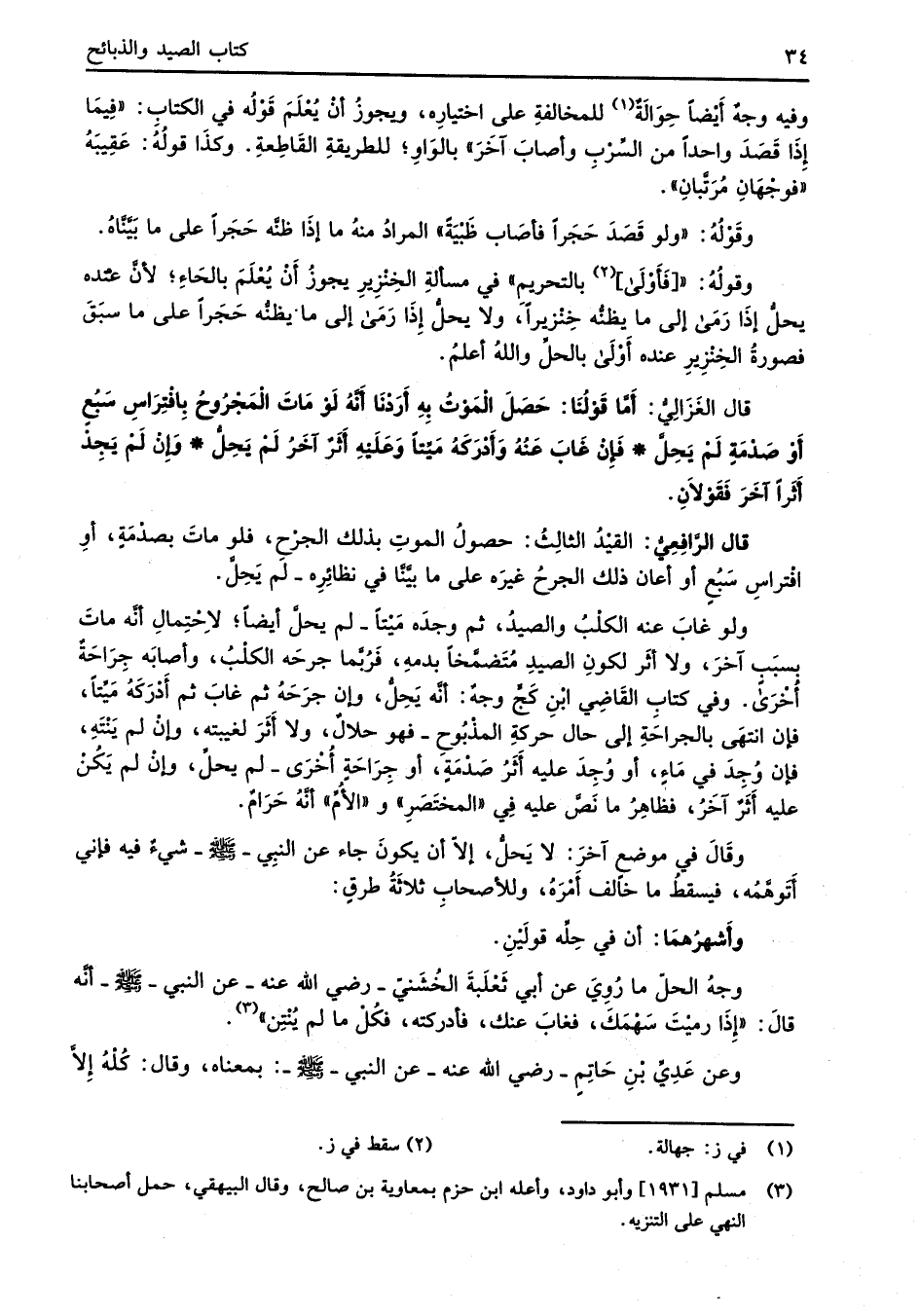قال الغَزَالِيُّ: أَمَّا قَوْلُنَا: حَصَلَ الْمَوْتُ بِهِ أَرَدْنَا أنَّهُ لَوْ مَاتَ الْمَجْرُوحُ بِافْتِرَاسِ سَبُعٍ أَوْ صَدْمَةٍ لَمْ يَحِلَّ* فَإنْ غَابَ عَنُهُ وَأَدْرَكَهُ مَيِّتًا وَعَلَيْهِ أَثَرٌ آخَرُ لَمْ يَحِلُّ* وَإِنْ لَمْ يَجِدْ أَثَرًا آخَرَ فَقَوْلاَنِ.