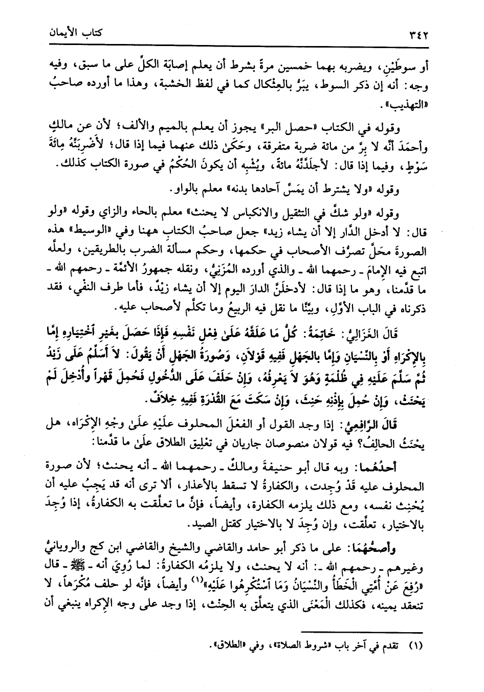 قَالَ الرَّافِعِيُّ: إذا وجد القول أو الفعْلَ المحلوف علَيْهِ علَى وجْهِ الإِكْرَاه، هل يحْنَثُ الحالِفُ؟ فيه قولان منصوصان جاريان في تعْلِيق الطلاق علَى ما قدَّمنا: