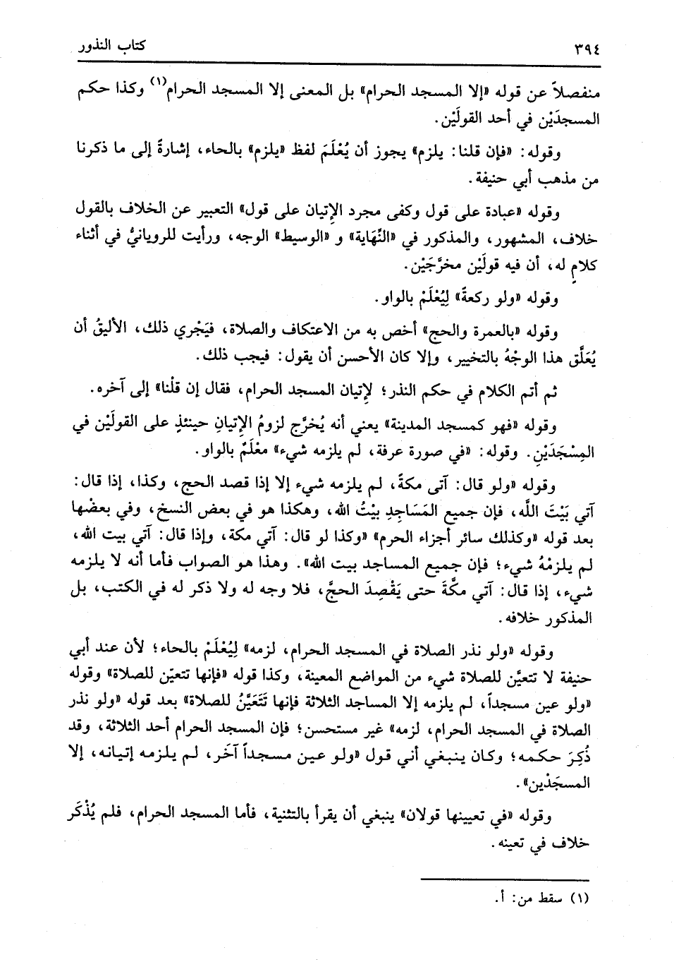 ثم أتم الكلام في حكم النذر؛ لإِتيان المسجد الحرام، فقال إن قلْنا" إلى آخره.