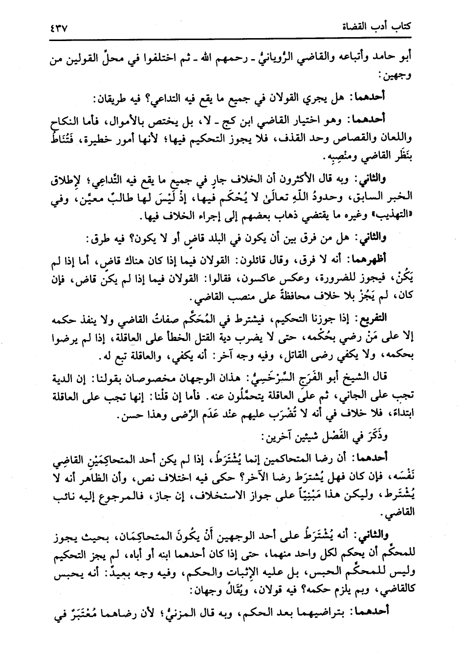 أحدهما: وهو اختيار القاضي ابن كج -لا، بل يختص بالأموال، فأما النكاح واللعان والقصاص وحد القذف، فلا يجوز التحكيم فيها؛ لأنها أمور خطيرة، فَتُنَاطُ بنَظَر القاضي ومنْصِبِه.