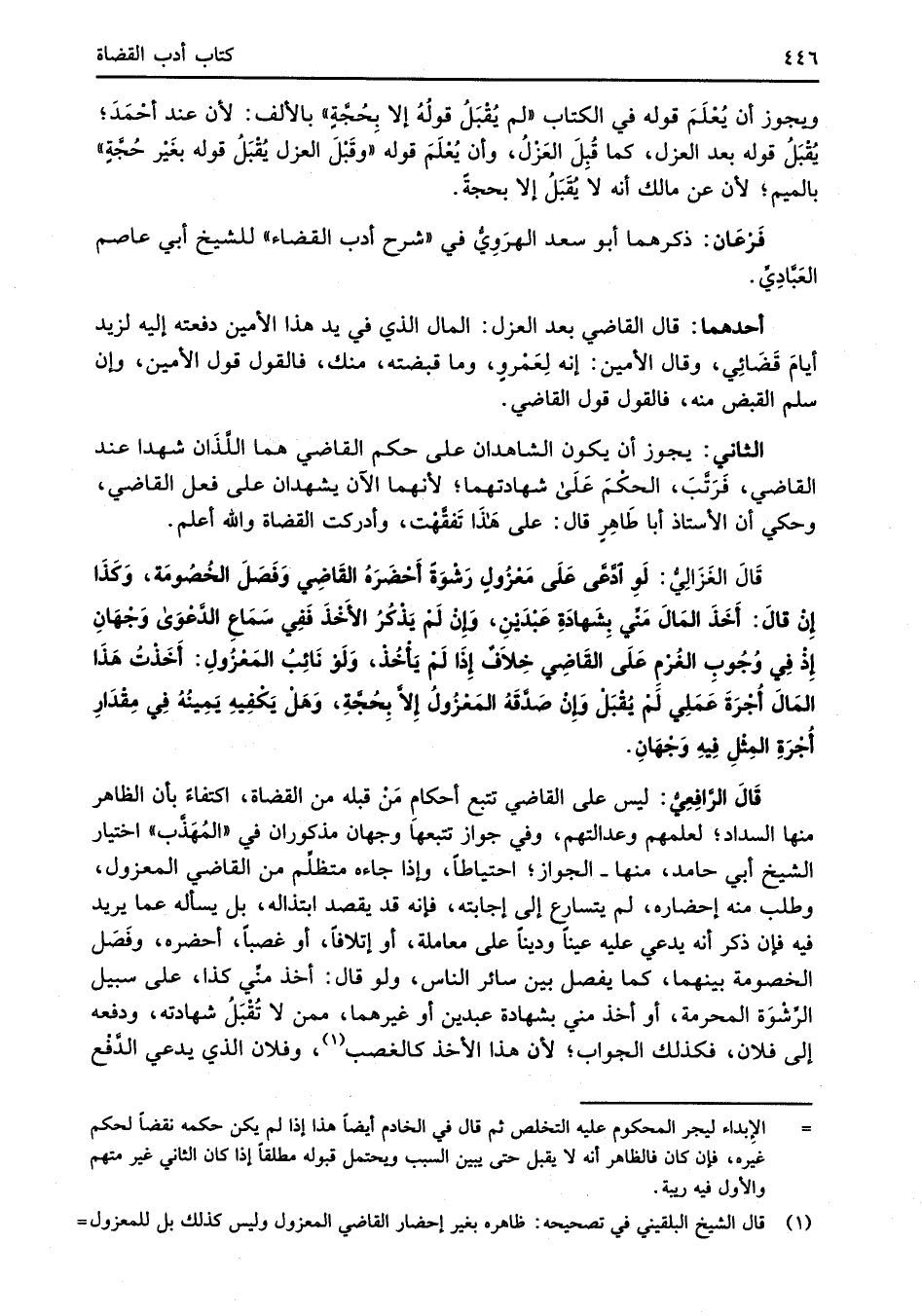 (¬1) قال الشيخ البلقيني في تصحيحه: ظاهره بغير إحضار القاضي المعزول وليس كذلك بل للمعزول =