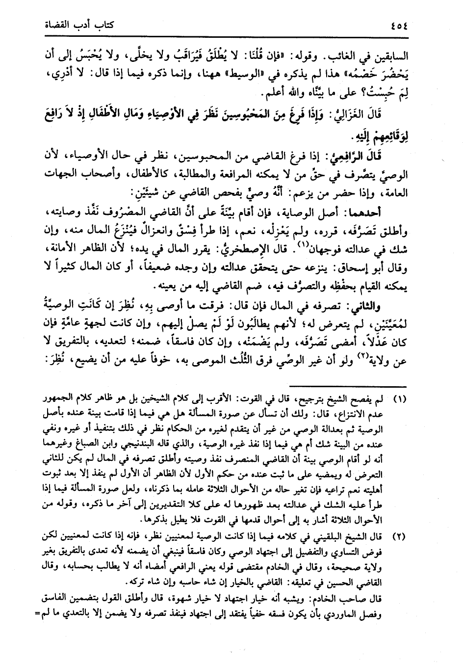 قَالَ الغَزَالِيّ: وإِذا فَرِغَ مِنَ المَحْبُوسِينَ نَظَرَ فِي الأَوْصِياءِ وَمالِ الأَطْفالِ إِذْ لا رَافِعَ لِوَقائِعِهِمْ إِلَيهِ.