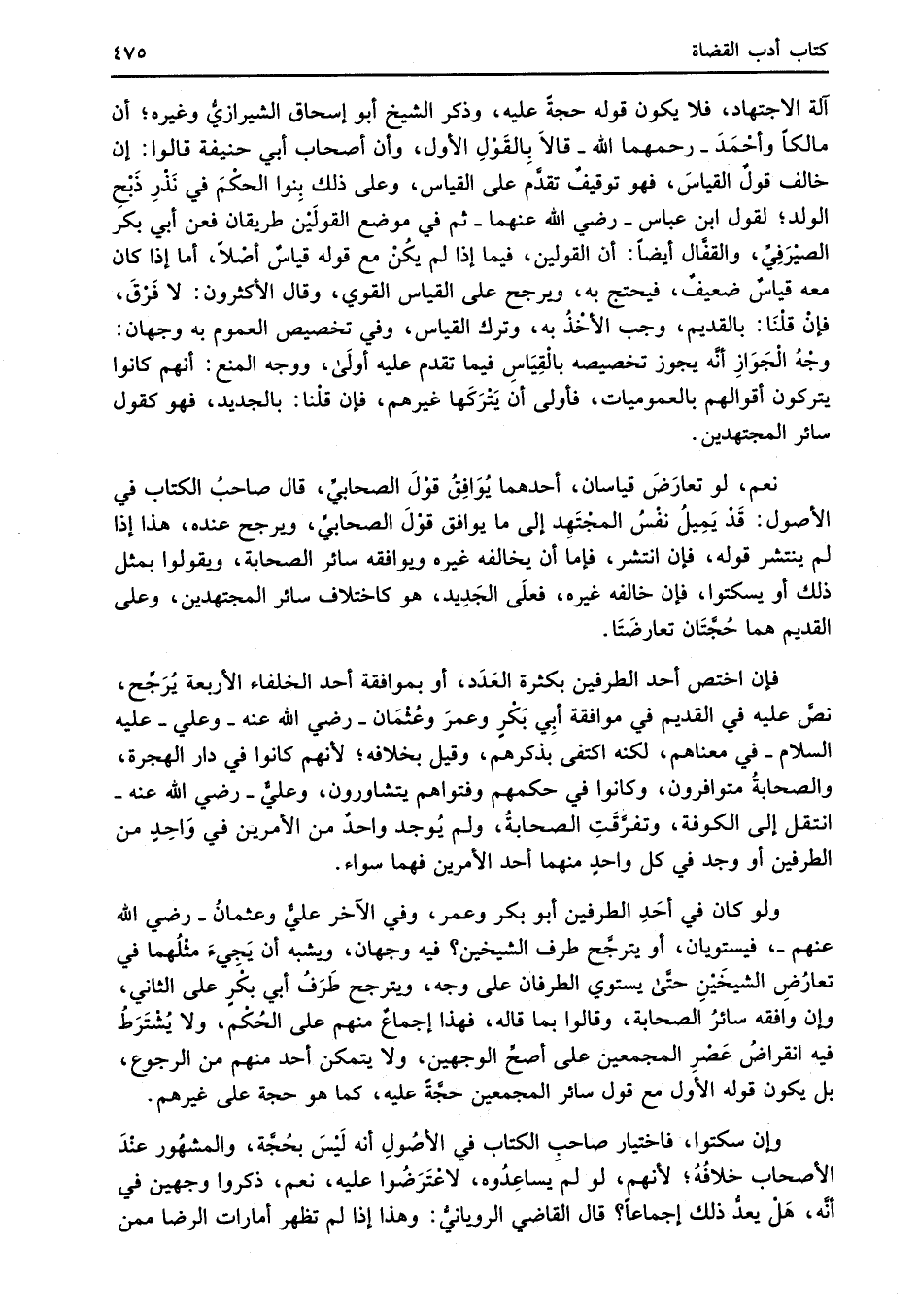 فإن اختص أحد الطرفين بكثرة العَدَد، أو بموافقة أحد الخلفاء الأربعة يُرَجِّح، نصَّ عليه في القديم في موافقة أبِي بَكْرٍ وعمرَ وعُثْمان -رضي الله عنه- وعلي -عليه السلام- في معناهم، لكنه اكتفى بذكرهم، وقيل بخلافه؛ لأنهم كانوا في دار الهجرة، والصحابةُ متوافرون، وكانوا في حكمهم وفتواهم يتشاورون، وعليٌّ -رضي الله عنه- انتقل إلى الكوفة، وتفرَّقَتِ الصحابةُ، ولم يُوجد واحدٌ من الأمرين في وَاحِدٍ من الطرفين أو وجد في كل واحدٍ منهما أحد الأمرين فهما سواء.