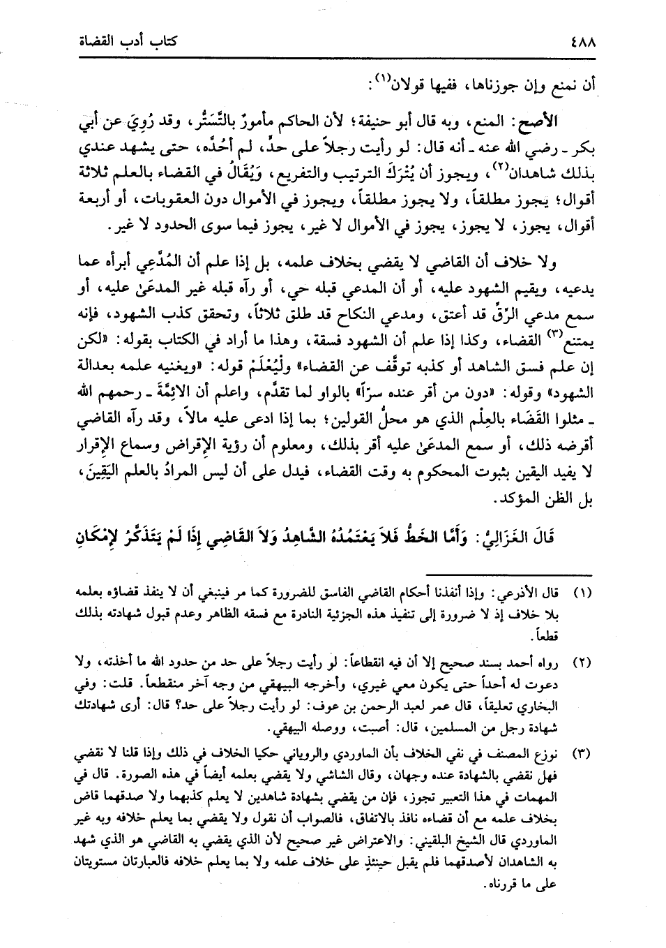 قَالَ الغَزَالِيُّ: وَأَمَّا الخَطُّ فَلا يَعْتَمُدُهُ الشَّاهِدُ وَلا القَاضِي إِذَا لَمْ يَتَذَكَّرُ لإِمْكَانِ