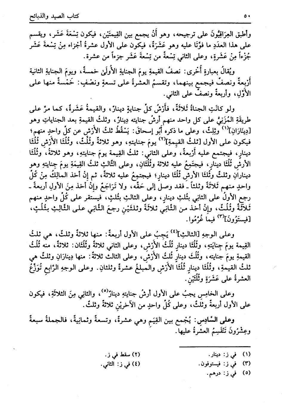 ويُقالُ بعبارةٍ أُخْرى: نصفُ القيمةِ يومَ الجنايةِ الأولَى خمسةٌ، ويومَ الجنايةِ الثانية أَرْبعةٌ ونصفٌ فيجمع بينهما، وتقسمُ العشرةُ على تسعةٍ ونصْفٍ: خَمْسةٌ منها على الأَوَّلِ، وأربعةٌ ونصفٌ على الثاني.