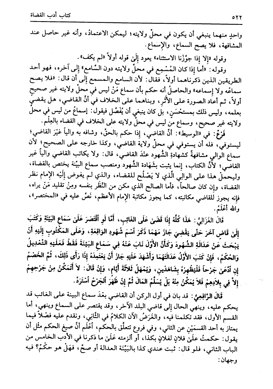 قَالَ الغَزَالِيُّ: هَذا كُلُّهُ إِذَا قَضَى عَلَى الغَائِبِ، أَمَّا لَوِ اقْتَصَرَ عَلَى سَمَاعِ البَيِّنَةِ وَكَتَبَ إِلَى قَاضٍ آخَرَ حَتَّى يَقْضِيَ جَازَ مَهْمَا ذَكرَ اسْمَ شُهُودِ الوَاقِعَةِ، وَعَلَى المَكْتُوبِ إِلَيْهِ أَنْ يَبْحَثَ عَنْ عَدالَةِ الشُّهُودَ وَكأَنَّ الأوَّلَ نَابَ عَنْهُ فِي سَمَاعِ البَيِّنَةَ فَقَطْ فَعَلَيْهِ التَّعْدِيلُ والحُكْمُ، فَإنْ كَتَبَ الأَوَّلُ عَدَالَتَهُما وَأَشْهَدَ عَلَيْهِ جَازَ أنْ يَعْتَمِدَهُ إِذَا رَأَى ذَلِكَ، ثُمَّ الخَصْمُ إِنِ ادَّعَى جَرْحًا فَلْيُظْهِرْهُ بِشَاهَدْينِ، وَيُمْهَلُ ثَلاثةَ أَيَّامٍ، وَإِنْ قَالَ: لا أتَمَكَّنُ مِنْ جَرْحِهِمْ إِلاَّ فِي بِلاَدِهِمْ فَلاَ يُمَكَّنُ مِنْهُ بَلْ يُسَلَّمُ المَالَ ثُمَّ إِنْ ظَهَرَ الجَرْحُ اسْتَرَدَّ.