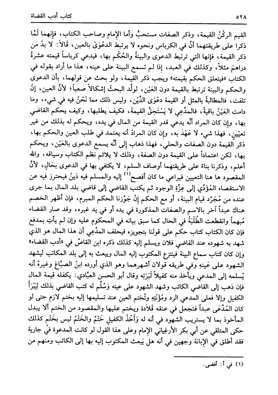 القيم الركْنُ القيمة، وذكر الصفات مستحبٌّ وأما الإِمام وصاحب الكتاب، فإنهما لَمَّا ذكرا على طريقتهما أنَّ في الكرباس ونحوه لا يرتبط الدعْوَى بالعين، قَالاَ: لا بدّ من ذكر القيمة، فإِنها التي ترتبط الدعوى والبينةُ والحُكْم بها، فيدعي كرباساً قيمته عشرةُ دراهمَ مثلاً، وكذلك في العبد، إِذا لم تسمع البينة على عينه، هذا ما أراد بقوله في الكتاب "فيتعلق الحكم بقيمته" ويجب ذكر القيمة، ولو بحث عن قولهما، بأن الدعوى والحكم والبينة ترتبط بالقيمة دون العَيْن، لولَّد البحثُ إشكالاً صعباً؛ لأنَّ العين، إنْ تلفت، فالمطالبةُ بالمثل أو القيمة دعْوَى الدَّيْن، وليس ذلك مما نَحْنُ فيه في شيء، وما دامت العَيْنُ باقيةً، فالمدَّعِي لا يَسْتَحِقُّ القيمةَ، فكيف يطلبها، وكيف يحكم القاضي بها، وإن كان المراد أنَّه يدعي قدر القيمة من المال في يده، ويحكم له بذلك من غير تعيْينٍ، فهذا شيء لا عَهْدَ به، دمِان كان المرادُ أنه يعتمد في طلب العين والحكم بها، ذكر القيمة دون الصفات والحلي، فهذا ذهاب إِلى أنَّه يسمع الدعوى بالعَيْن، ويحكم بها، لكن اعتماداً على القيمة دون الصفة، وذلك لا يلائم نظم الكتاب وسياقه، والله أعلم، وذكرنا بناءً على طريقتهما أوصاف السلم، لا يكتفي بها في الدعوى بحَالٍ؛ لأنَّ المقصود هاهنا التعيين فيراعي ما كان أفصح (¬1) إليه والمسلم فيه دَينُ فيحترز فيه عن الاستقصاء المُؤَدَّي إلى عِزَّةِ الوجود ثم يكتب القاضي إلى قاضي بلد المال بما جرى عنده من مُجَرَّد قيام البينة، أو مع الحكم إِنْ جَوَّزنا الحكم المبرم، فإن أظهر الخصم هناك عبداً آخر بالاسم والصفات المذكورة في يده أو في يد غيره، وقد صار القضاء مُبهماً وانقطعت الطُلْبَةُ في الحال كما سبق بيانه في المحكوم عليه وإن لم يأتِ بمدفع فإن كان الكتاب كتاب حكم على قولنا بتجويزه فيحلف المدَّعِي أن هذا المال هو الذي شهد به شهوده عند القاضي فلان ويسلم إليه كذلك ذكره ابن القاصِّ في "أدب القضاء" وإن كان كتاب سماع البينة فينتزع المكتوب إليه المال ويبعث به إلى بلد المكاتب ليشهد الشهود على عَينهِ وفي طريقه قولان أشهرهما وهو الذي أورده ابنُ الصبَّاغ وغيرهُ أنه يُسلمه إلى المدعي ويأخذ منه كفيلاً لَبَرَتِه وقأل أبو الحسن العبَّادي: يكفله قيمة المال فإن ذهب إلى القاضي الكاتب وشهد الشهود على عينه وَسُلِّم له كتب القاضي بذلك لِيَبْرَأَ الكفيل وإلا فعلى المدعي الرد ومُؤْنَتِهِ وتُختم العين عند تسليمها إليه بختم لازم حتى لو كان المُدَّعَى عبداً فتجعل في عنقه قَلاَدة ويختم عليها والمقصود من الختمِ ألا يبدل المأخوذ بما لا يستريب الشهود في أنه له وَأَخْذُ الكفيلِ خَتْمٌ والخَتْمُ ليس بختْمٍ كذلك حكى المتلقي عن أبي بكر الأرغِياني الإِمام وعلى هذا القول لو كانت المدعوة في جارية فقد أطلق في الإِبانة وجهين في أنه هل يَبعث المكتوب إليه بها إلى الكاتب ومنهم من