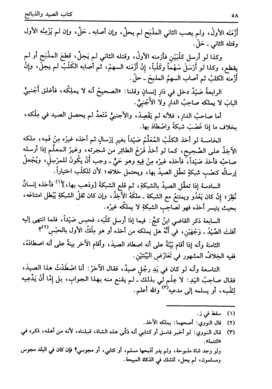 السابعة ذكر القاضي ابنُ كجٍّ: فيما إذا أرسل كلْبَه، فحبس صَيْدًا، فلما انتهى إليه أفلتَ الصَّيْدُ -وَجْهَيْنِ، في أَنَّهُ هل يملكه من أخذه أو هو مِلْكُ الأول بالحبْسِ (¬2)؟