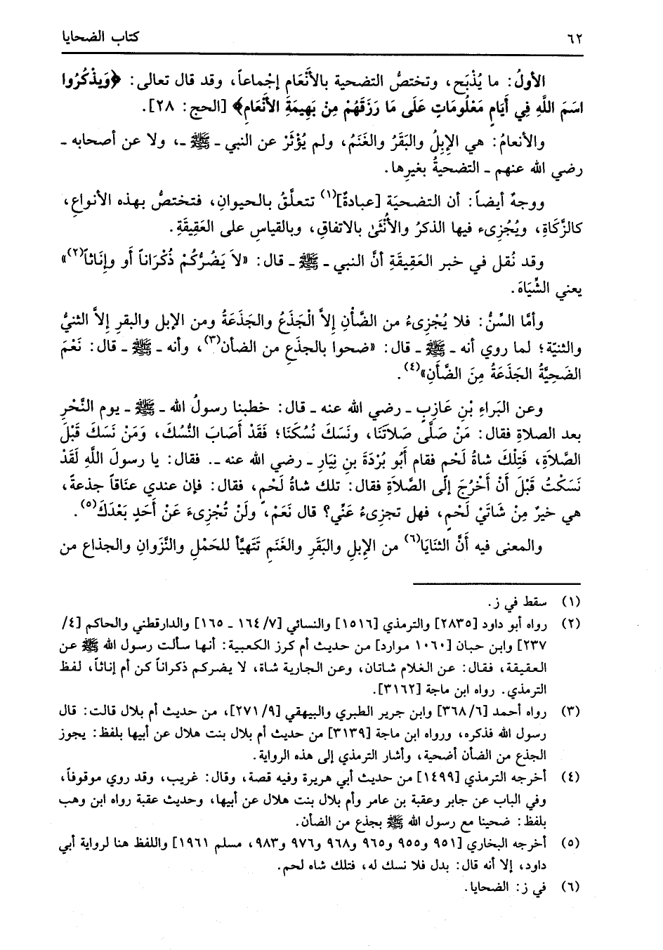 (¬5) أخرجه البخاري [951 و 955 و 965 و 968 و 976 و 983، مسلم 1961] واللفظ هنا لرواية أبي داود، إلا أنه قال: بدل فلا نسك له، فتلك شاه لحم.